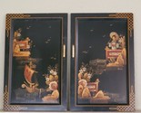 Vintage Asian Hand Painted ART by Dimas 2 Cabinet Doors w/ Pulls 23x14.5" Each