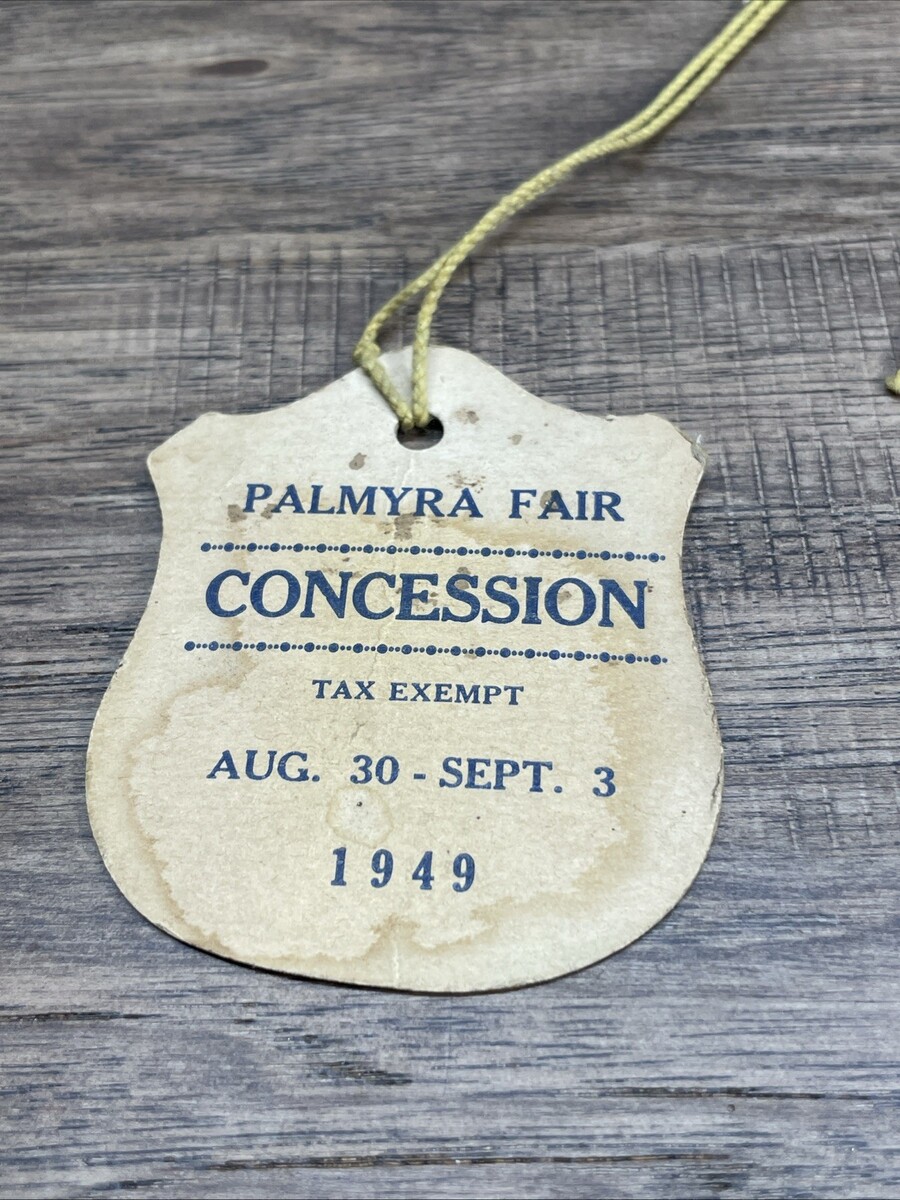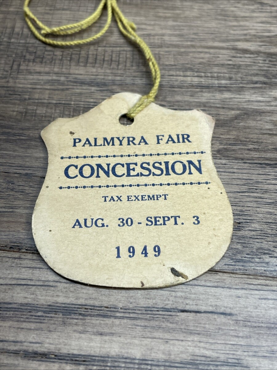 Vintage Aug 30-Sept 3 1949 Palmyra Fair Concession Tax Exempt Badge KG