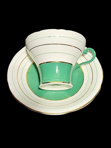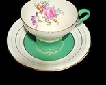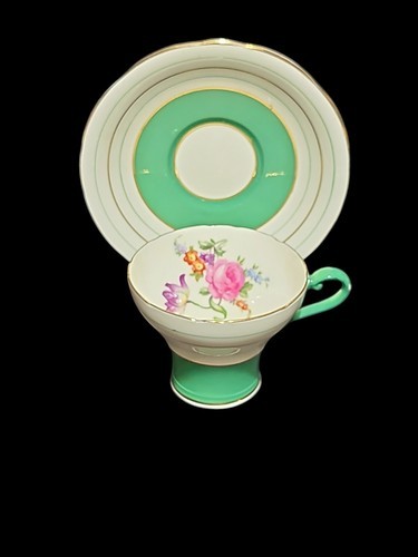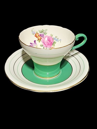 Vintage Aynsley Green Corset Shape Wild Flower Bone China Cup Saucer 1136