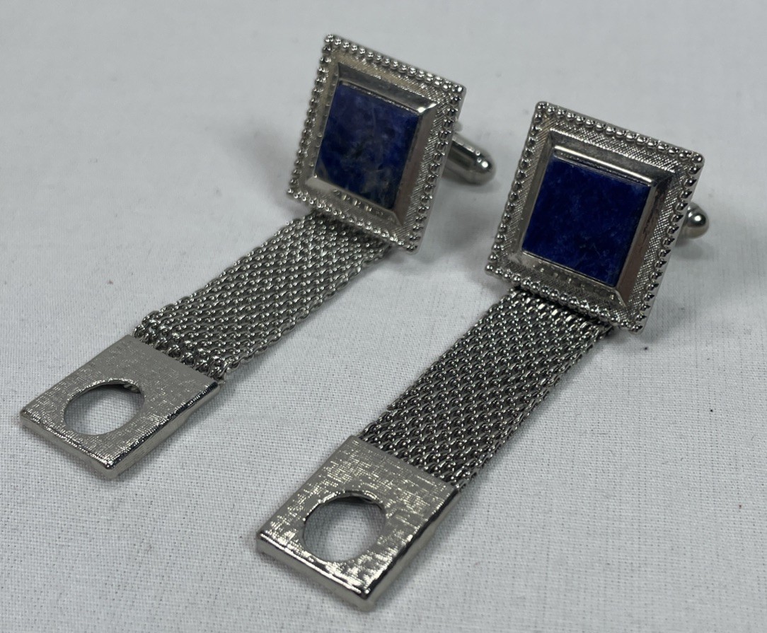 Primary image for Vintage BLUE SODALITE Silver Wrap-Around Square Cufflinks, With Bonus Tie Bar!