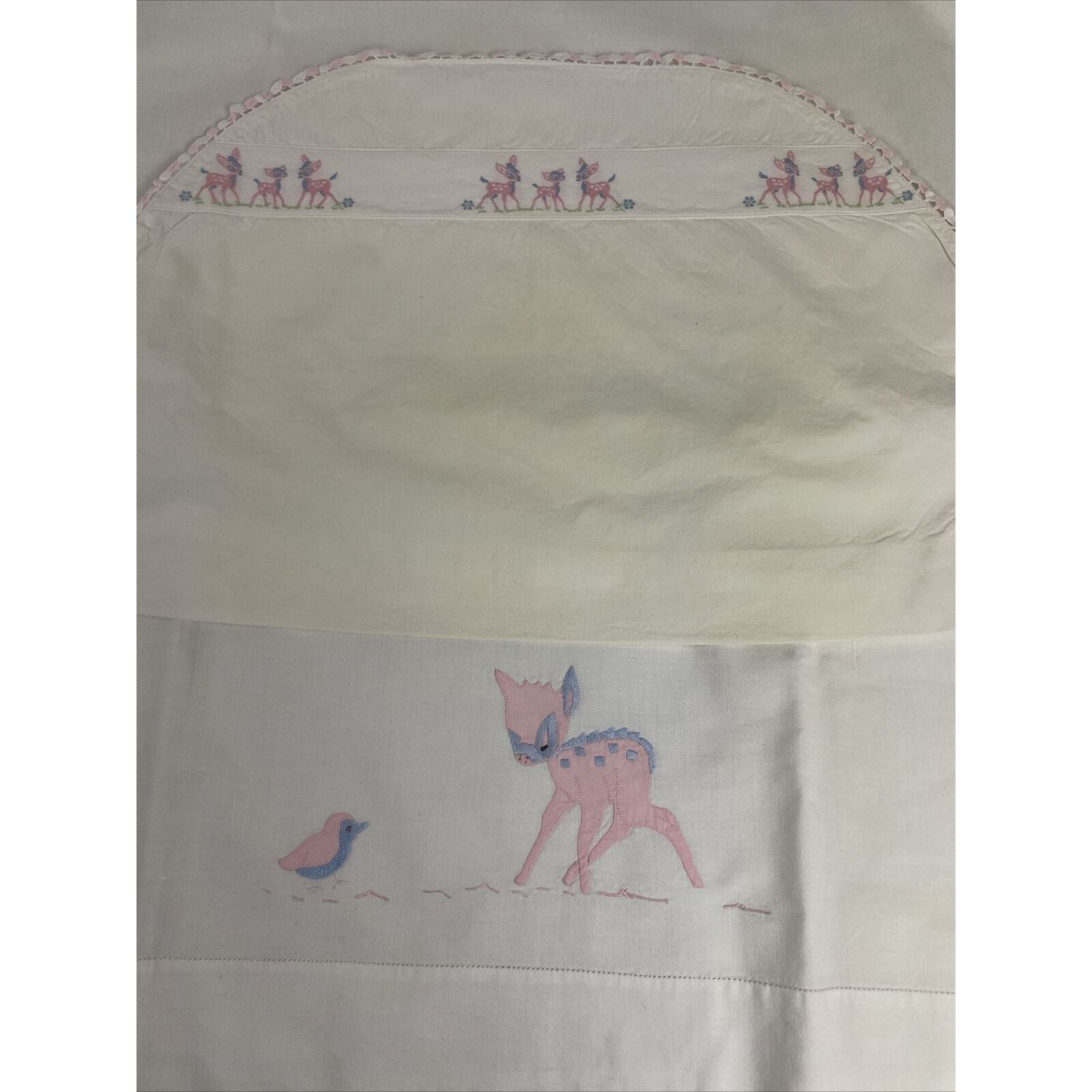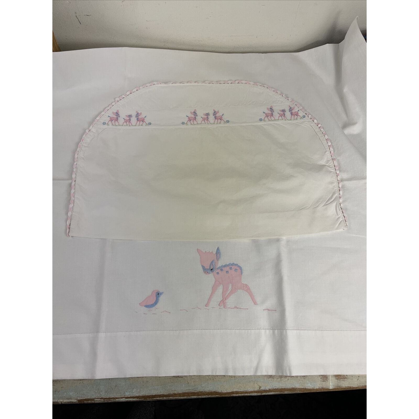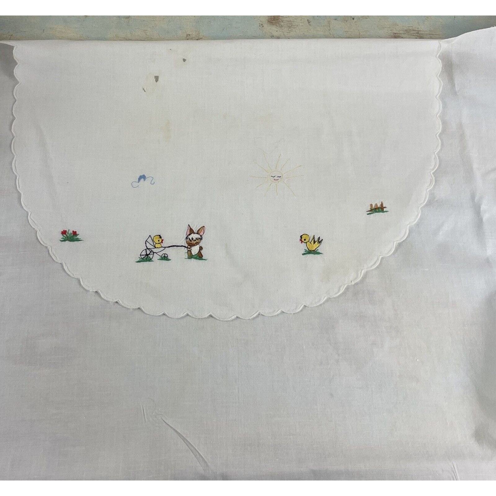 #1150 Vintage Baby Linens Lot 12 Embroidered Baby Sham, Highchair Covers, Sheets Pillowcases. Cutter Craft projects. 3 sets of matching sheet and pillow sham plus other applique and embroidered linens. There are holes in a couple. Please look at the pictures. Always consider offers.
