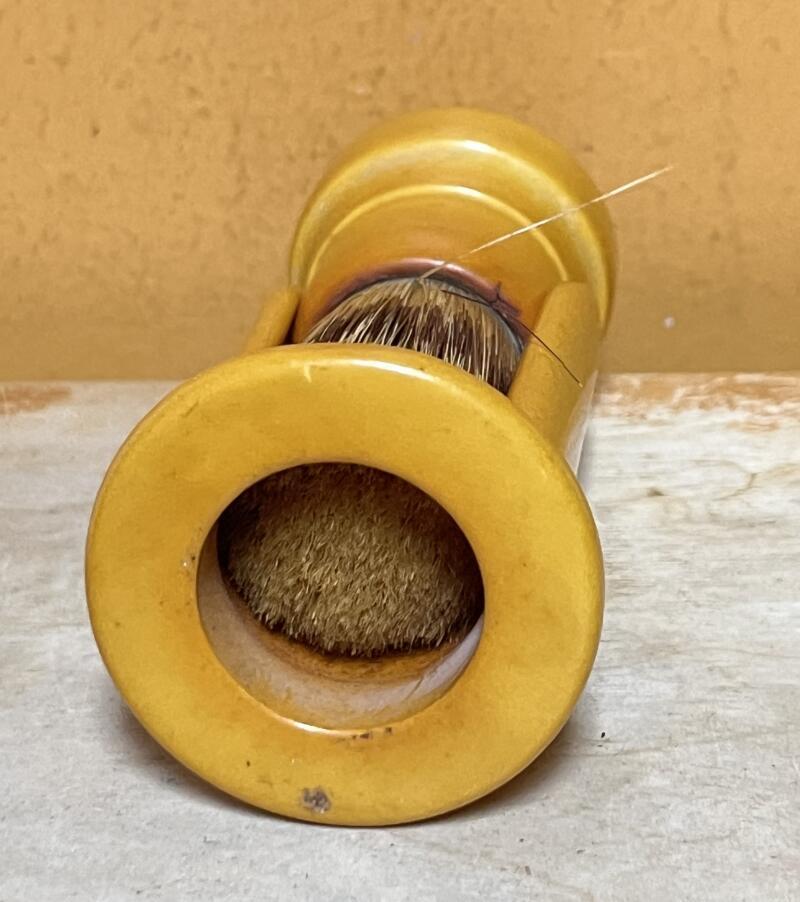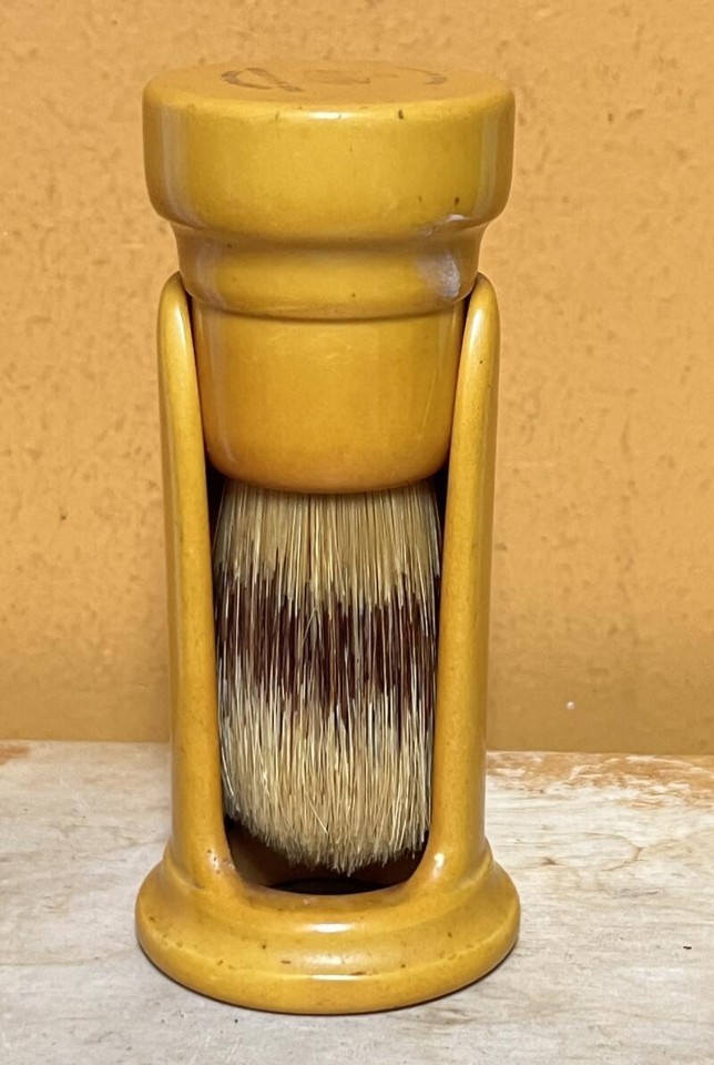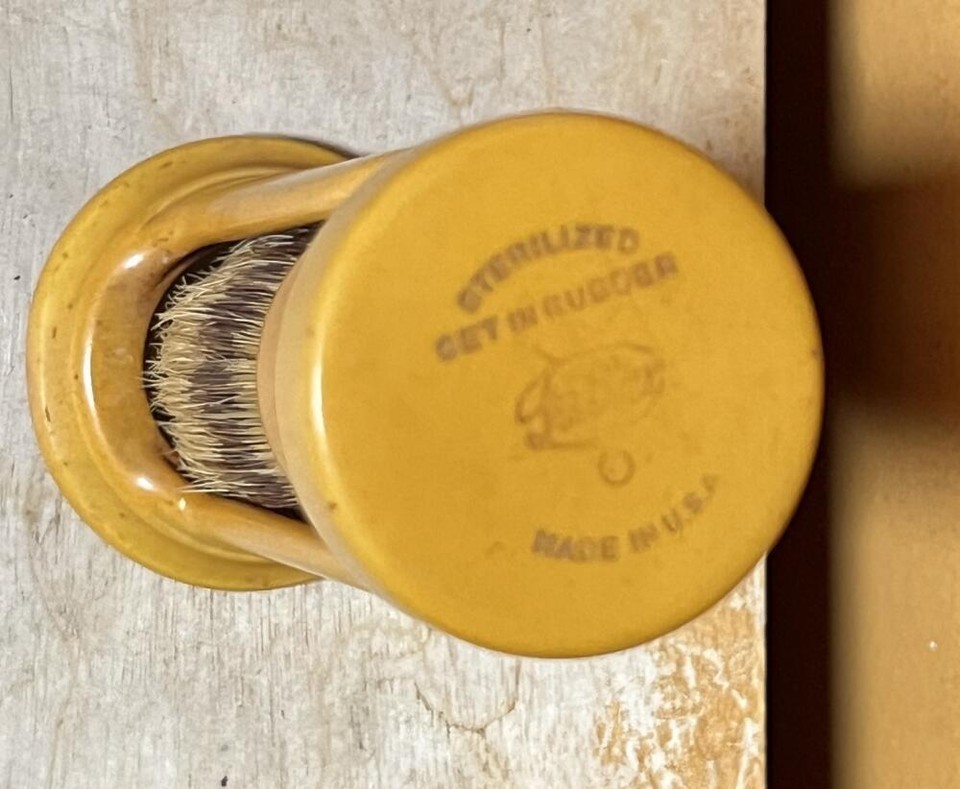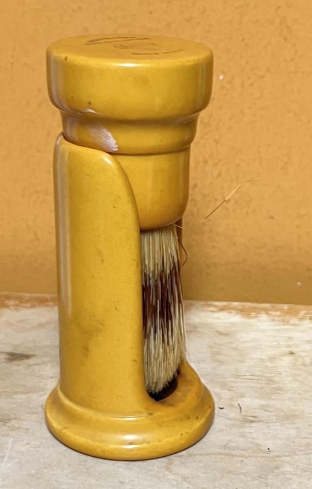 Vintage Bakelite Fuller Butterscotch Shaving Brush w/ upright Holder Sterilized
