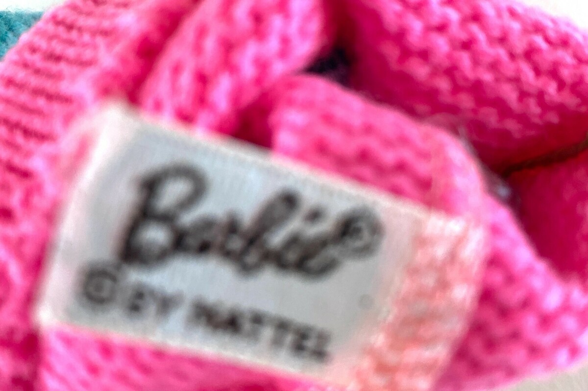 - Vintage BARBIE Fashion #1804 KNIT HIT VGC Pink Blue Sheath Dress