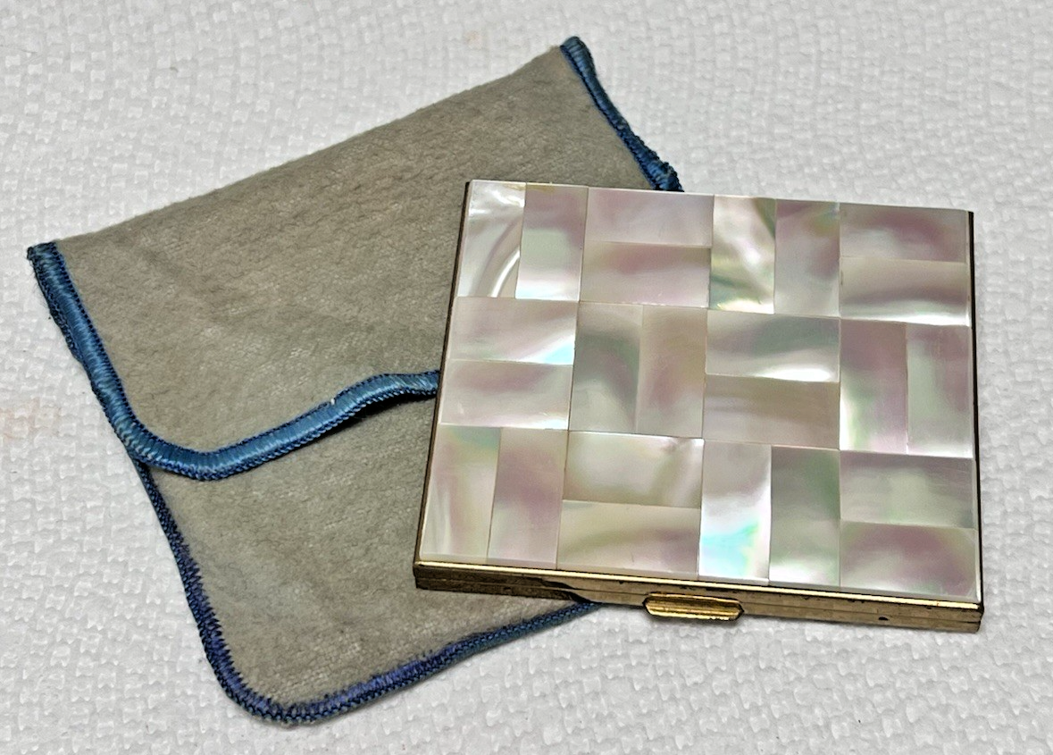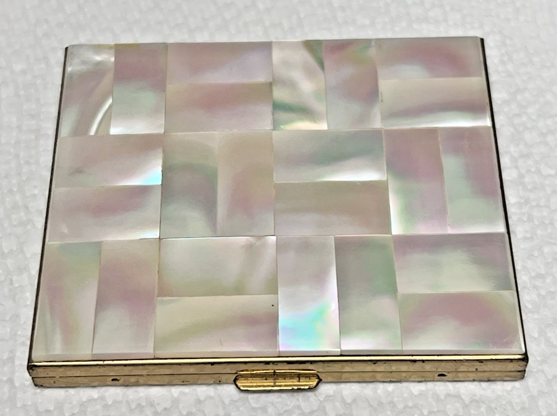Vintage Beautiful Mother of Pearl Powder Compact 2 3/4" x 2 1/2 "
