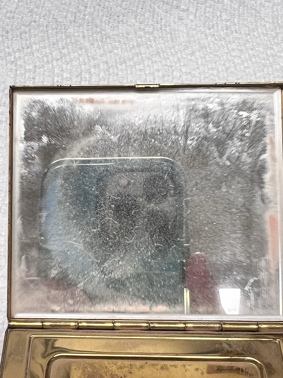 Vintage Beautiful Mother of Pearl Powder Compact 2 3/4" x 2 1/2 " The mirror light spots ! The mirror has a stunning bevel not sure where it was made as we don't see a mark...also the soft puff may or may not be original