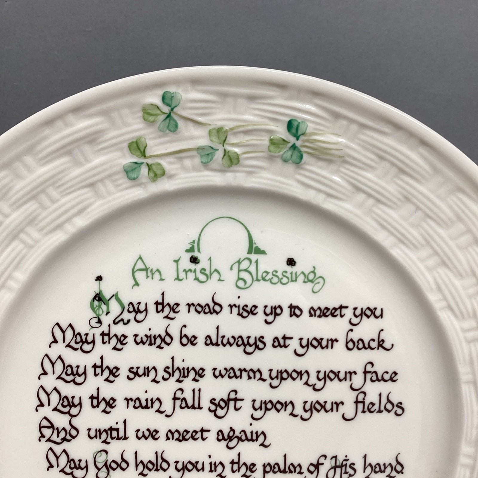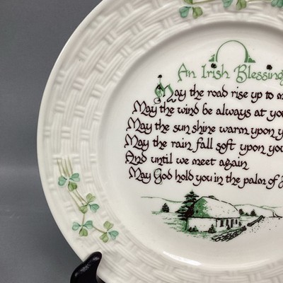 - Vintage Belleek Porcelain 8.5” Irish Blessing Collector’s Shamrock Plate