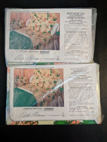 - Vintage Bill Blass 4 PC Doppel Bettlaken Set Springmaid Pink Gelb Blumen Neu