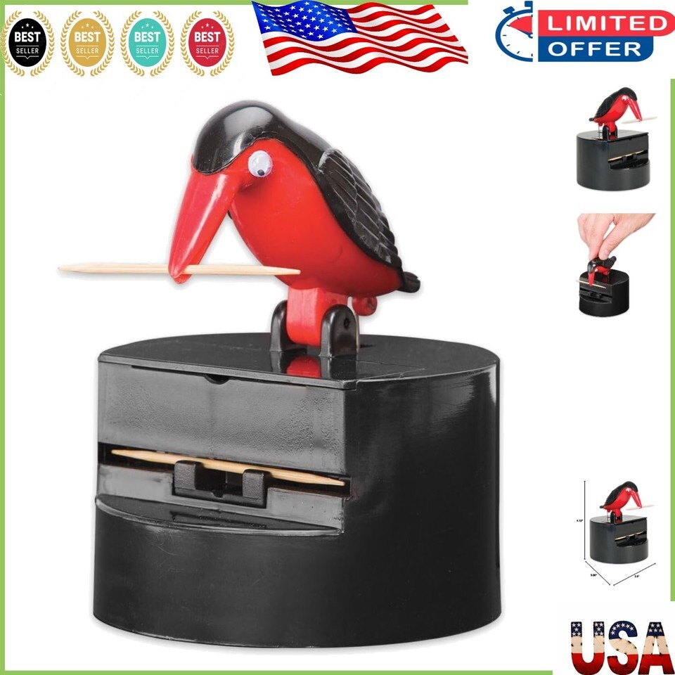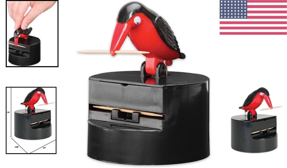 Innovative mechanism: press the bird's head to dispense a toothpick.