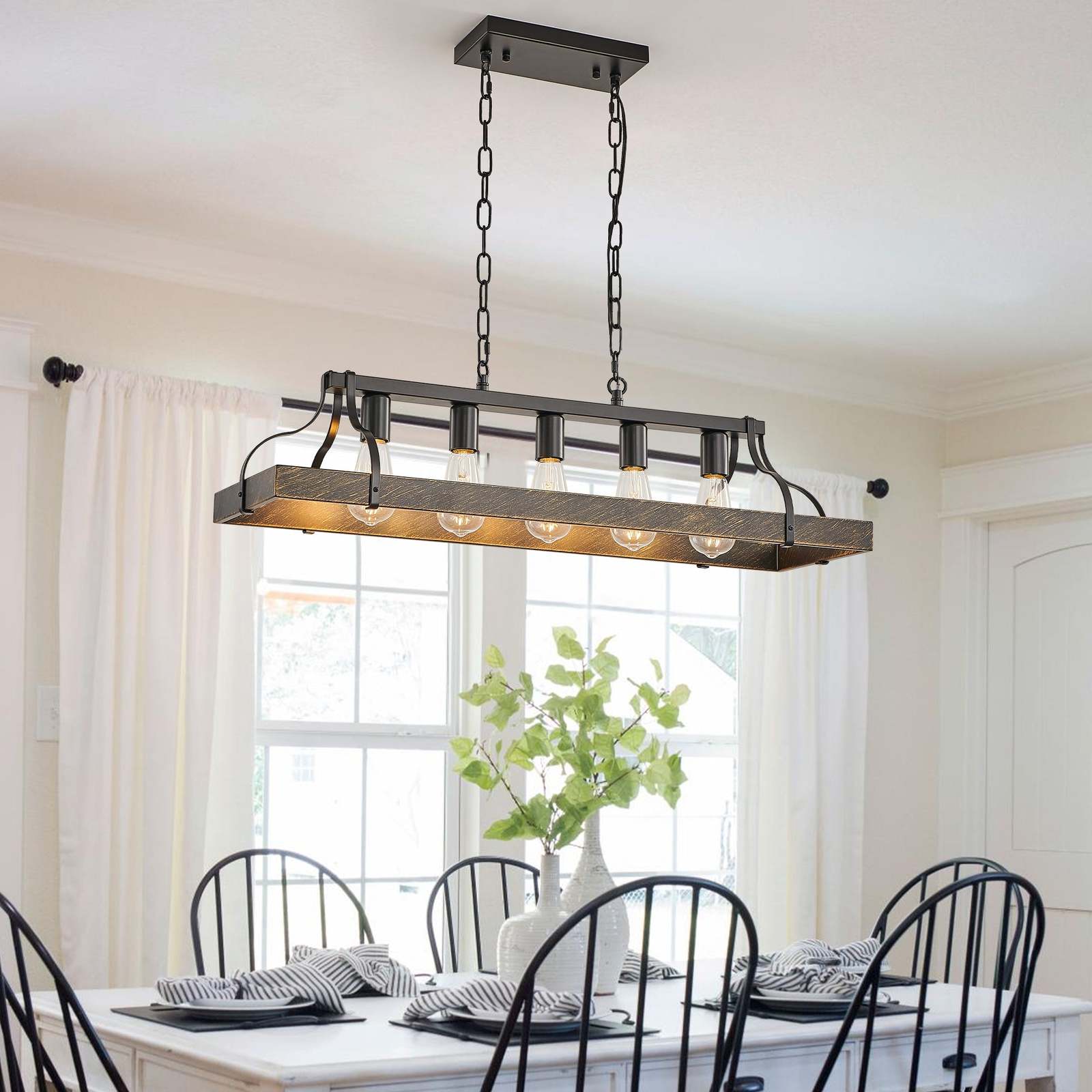 34-Inch Black and Gold Vintage Pendant Light, 5 E26 Bulb Sockets, Adjustable Chain Height