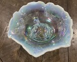 Vintage Blue Iridescent Horse Pony Head Profile Dugan Glass Bowl Greek Key
