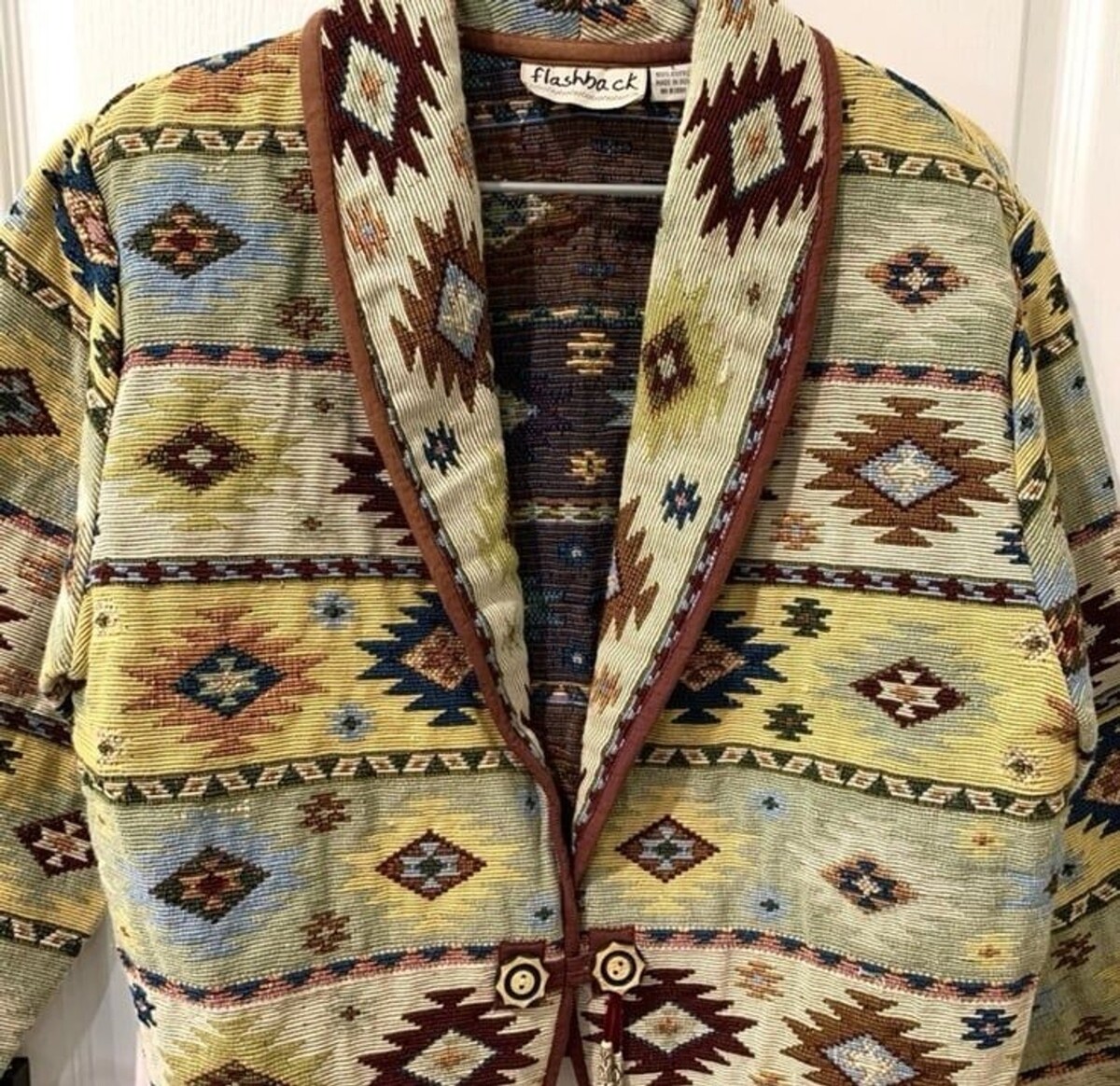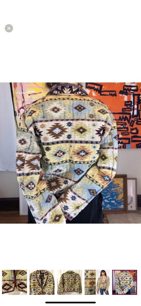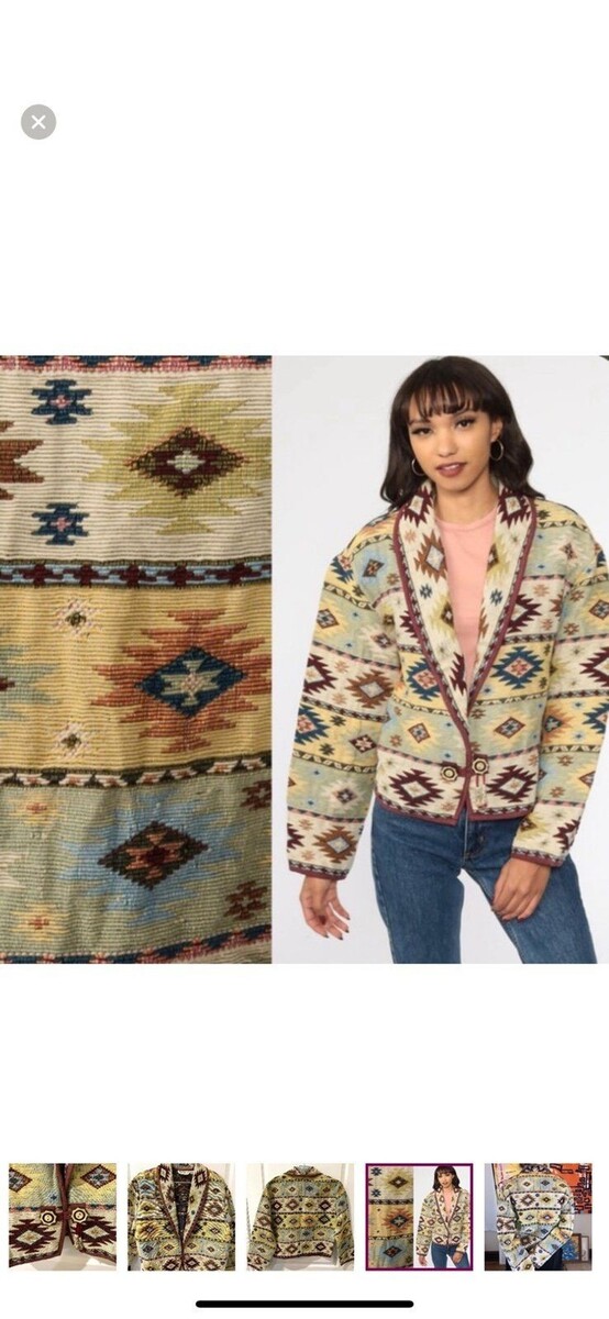 - Vintage Boho Aztec Flashback Southwest Tapestry Cardigan Jacket Sz Medium