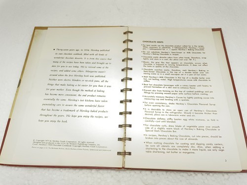- Vintage Books, Hersheys 1934 Cookbook. Reprint 1971. Spiral Bound, Lays Flat.