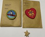 Vintage Boy Scouts Life Rank Rowing merit badge and star scout pin 1970s.