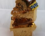 This Vintage Bradbury Mint Gold Christmas Ornament features Santa going down the chimney with toys, adding a nostalgic touch to your holiday decor. The gold color and vintage design make it a special addition to any Christmas ornament collection. This original ornament from the Bradbury Mint captures the essence of the holiday season with its classic theme and unique details. Perfect for collectors or anyone looking to add a touch of tradition to their Christmas tree.
