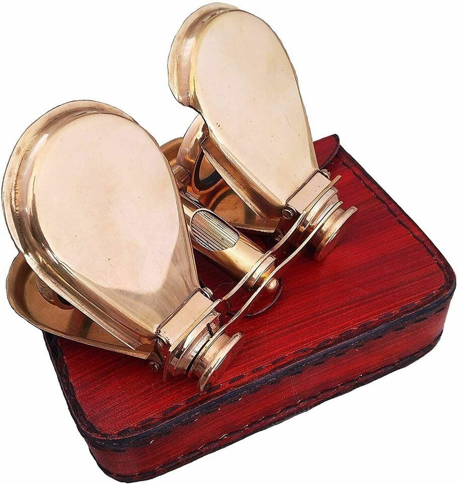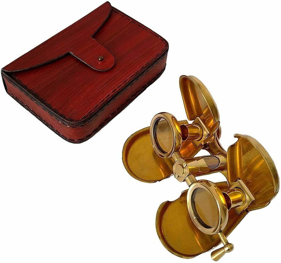 - Vintage Brass Folding Binoculars Opera Glasses Spyglass with Leather Case Gift