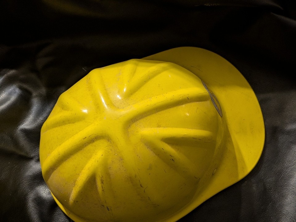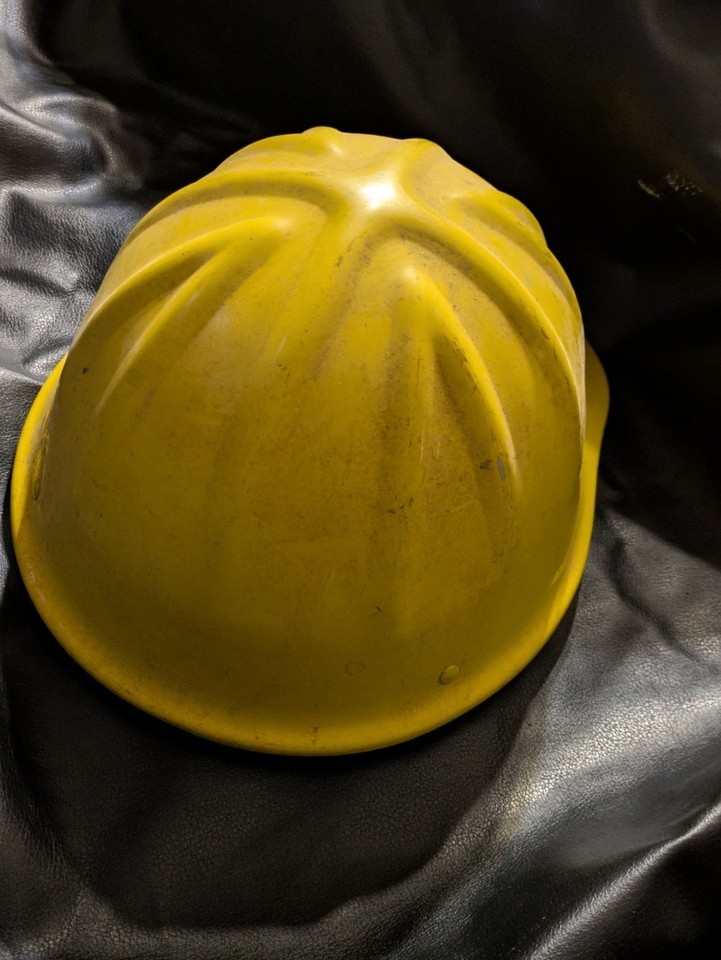 - Vintage Brooklyn Union Gas Co Yellow Metal Hard Hat- show original title Ori...