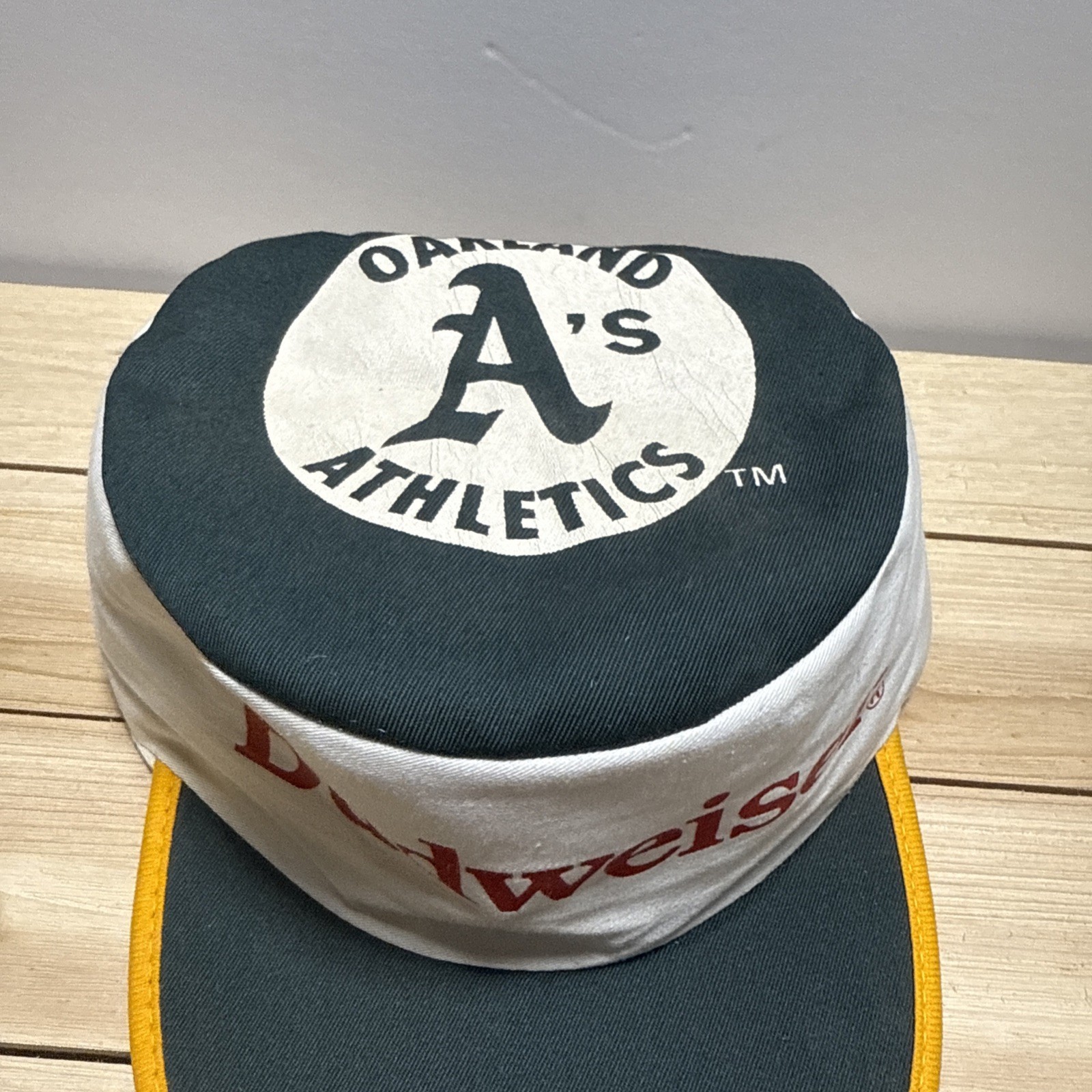 Vintage Budweiser Beer Painters Hat 1980’s Flex Adjustable Oakland A’s Cap