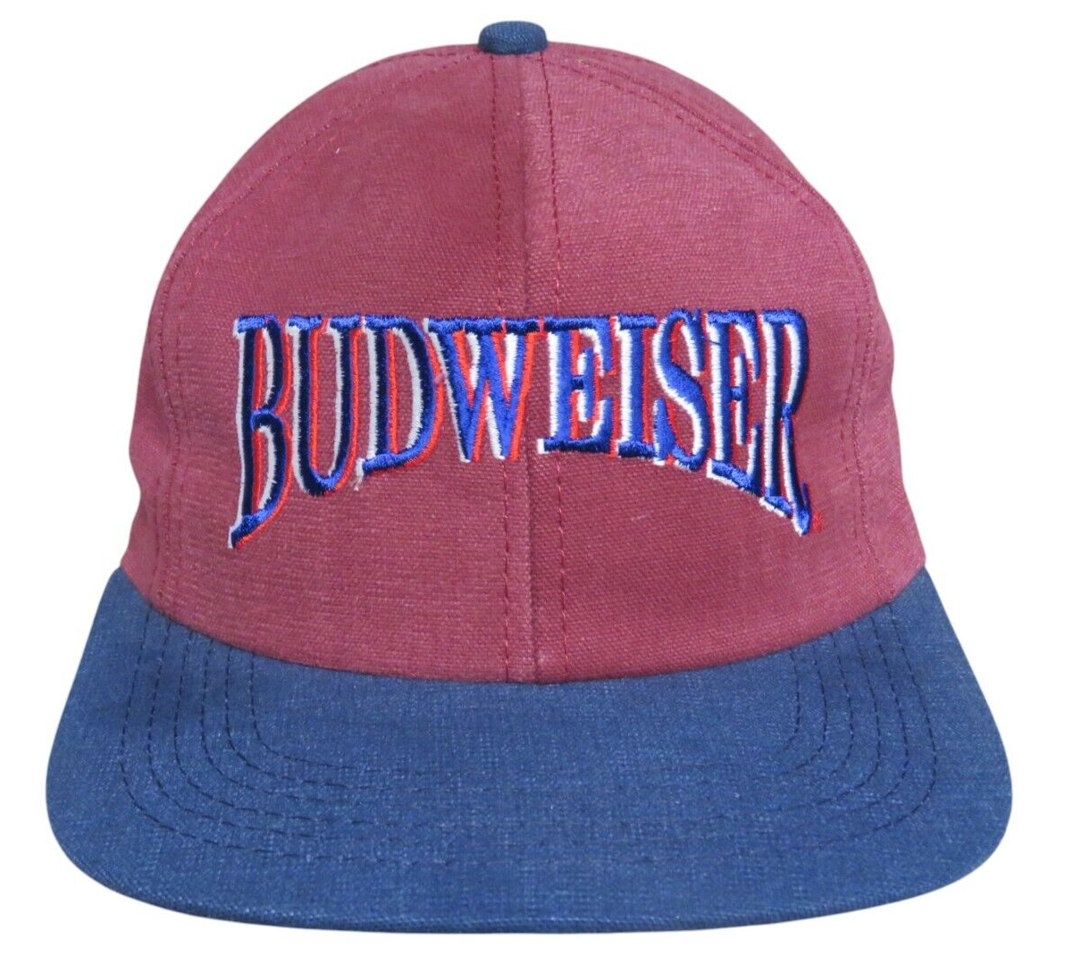 Vintage Budweiser Hat 90s Red Blue Maroon- Made in USA - NEW