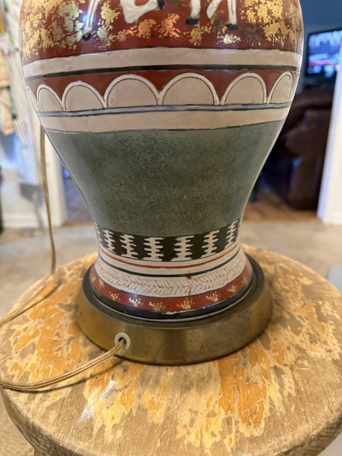 Vintage Bull Chinoiserie Porcelain Table Lamp Ginger Jar Style Urn