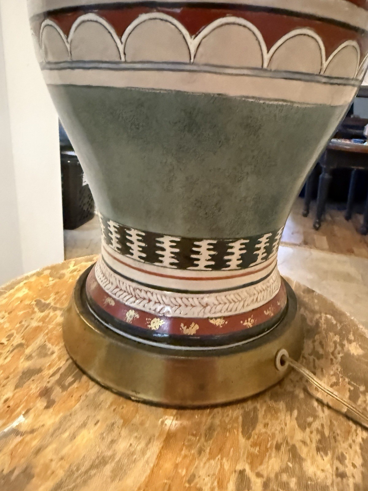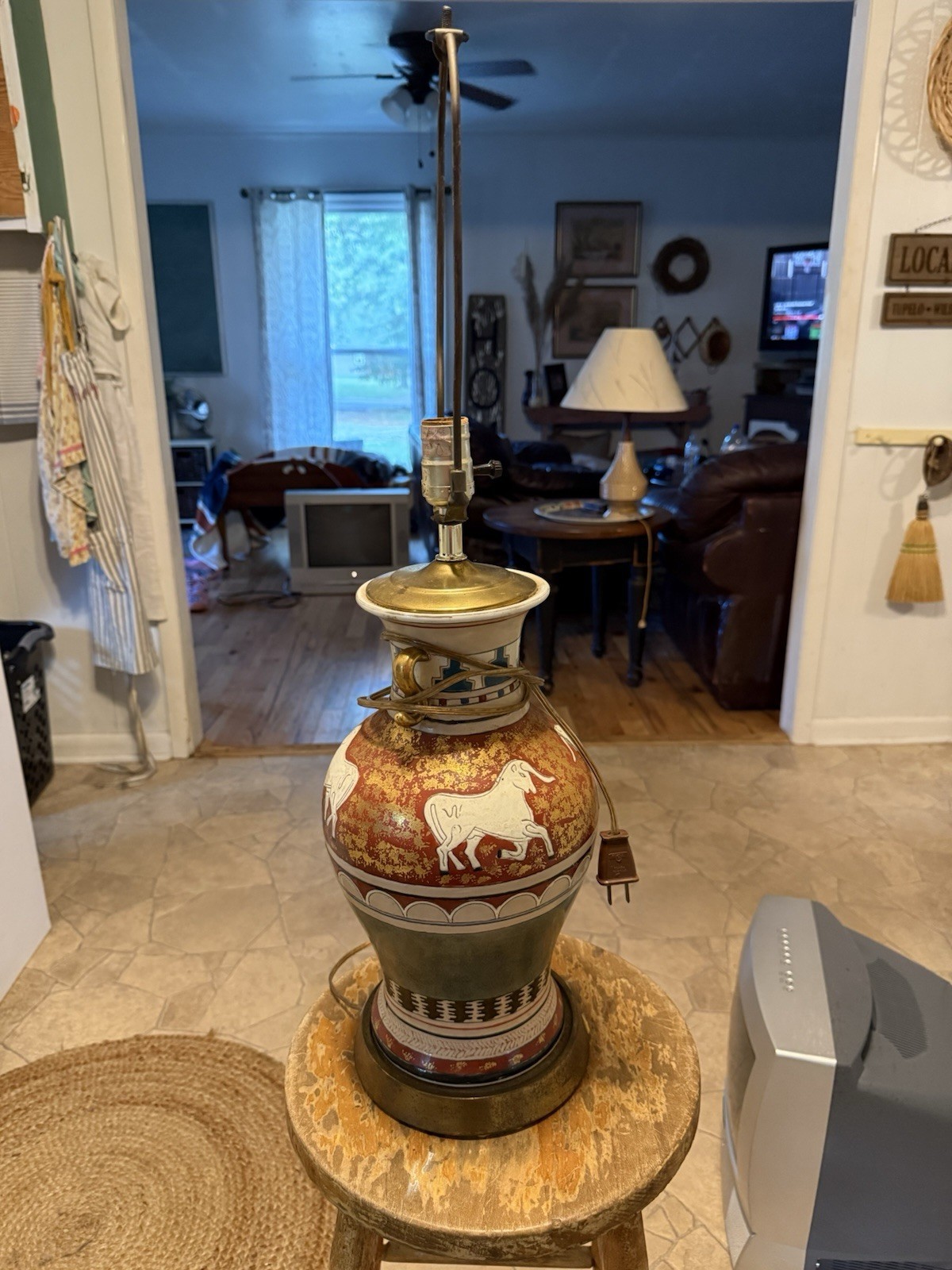This Vintage Bull Chinoiserie Porcelain Table Lamp features a unique and charming design, embodying the intricate craftsmanship of traditional Chinese ceramics. The multicolor painted finish gives it a distinctive and artistic touch, perfect for adding character to any space. With its oriental style and ginger jar design, this lamp is both functional and decorative, making it a standout piece for collectors or those looking to add a touch of vintage flair to their home decor. Perfect for unisex adults, this corded electric table lamp is a one-of-a-kind piece that will surely make a statement. Measurements in pictures