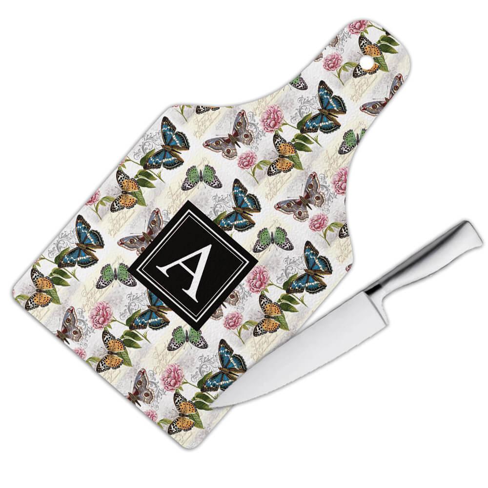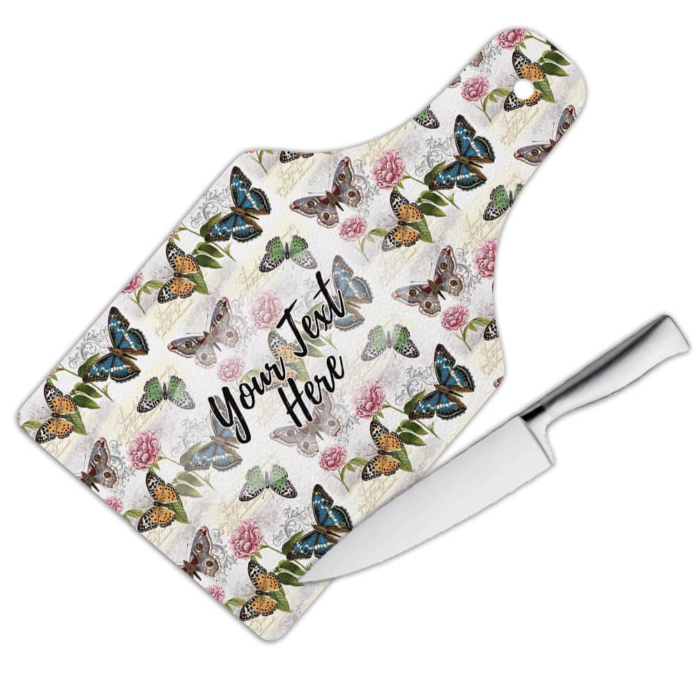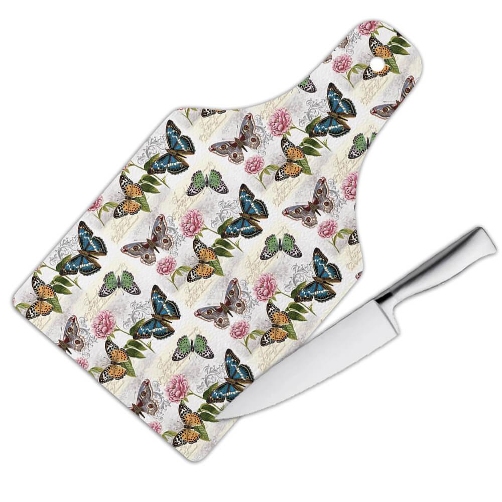 Vintage Butterfly Pattern : Gift Cutting Board Damask Style Roses Small Tortoise