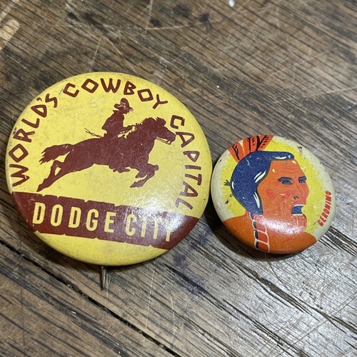 - Vintage Buttons Dodge City Cowboy Capital & Geronimo pin backs