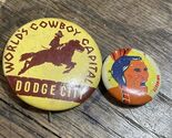 Vintage Buttons Dodge City Cowboy Capital & Geronimo pin backs