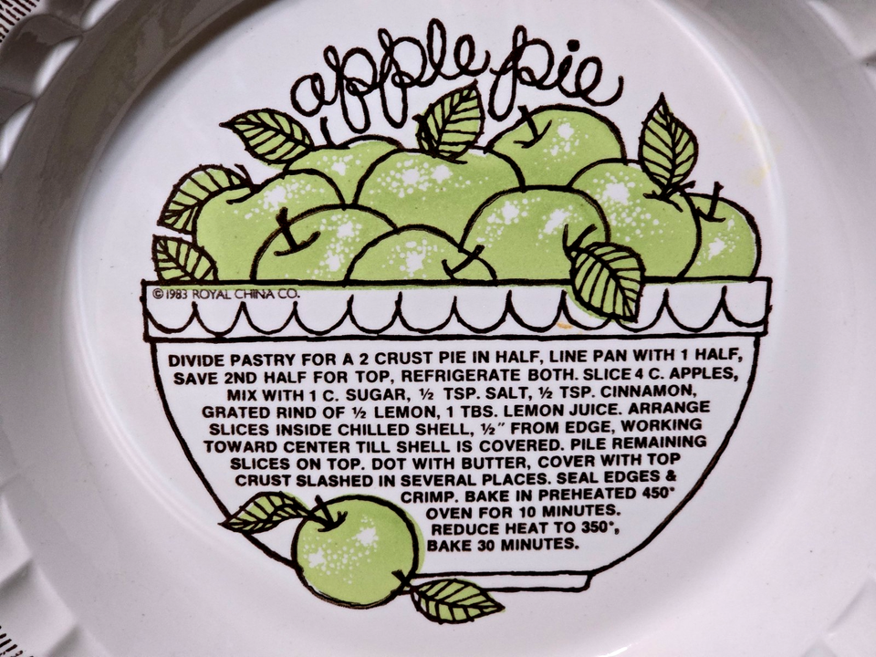 Country Harvest Apple Pie Plate featuring a printed apple pie recipe and