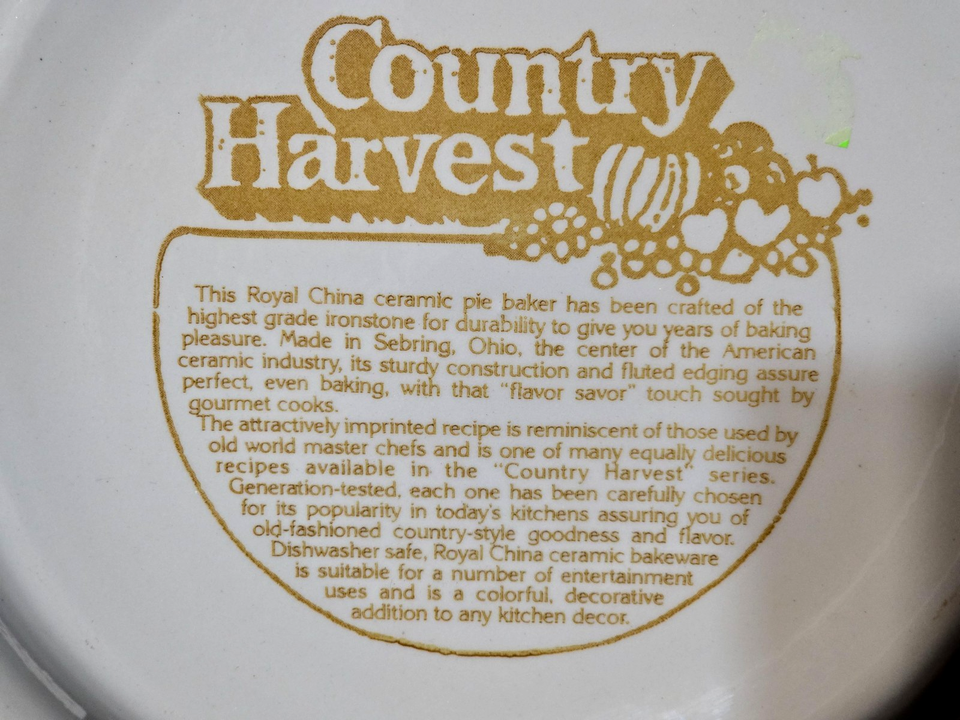 - Vintage COUNTRY HARVEST Apple Pie Plate Recipe Dish - Farmhouse Kitchen Decor