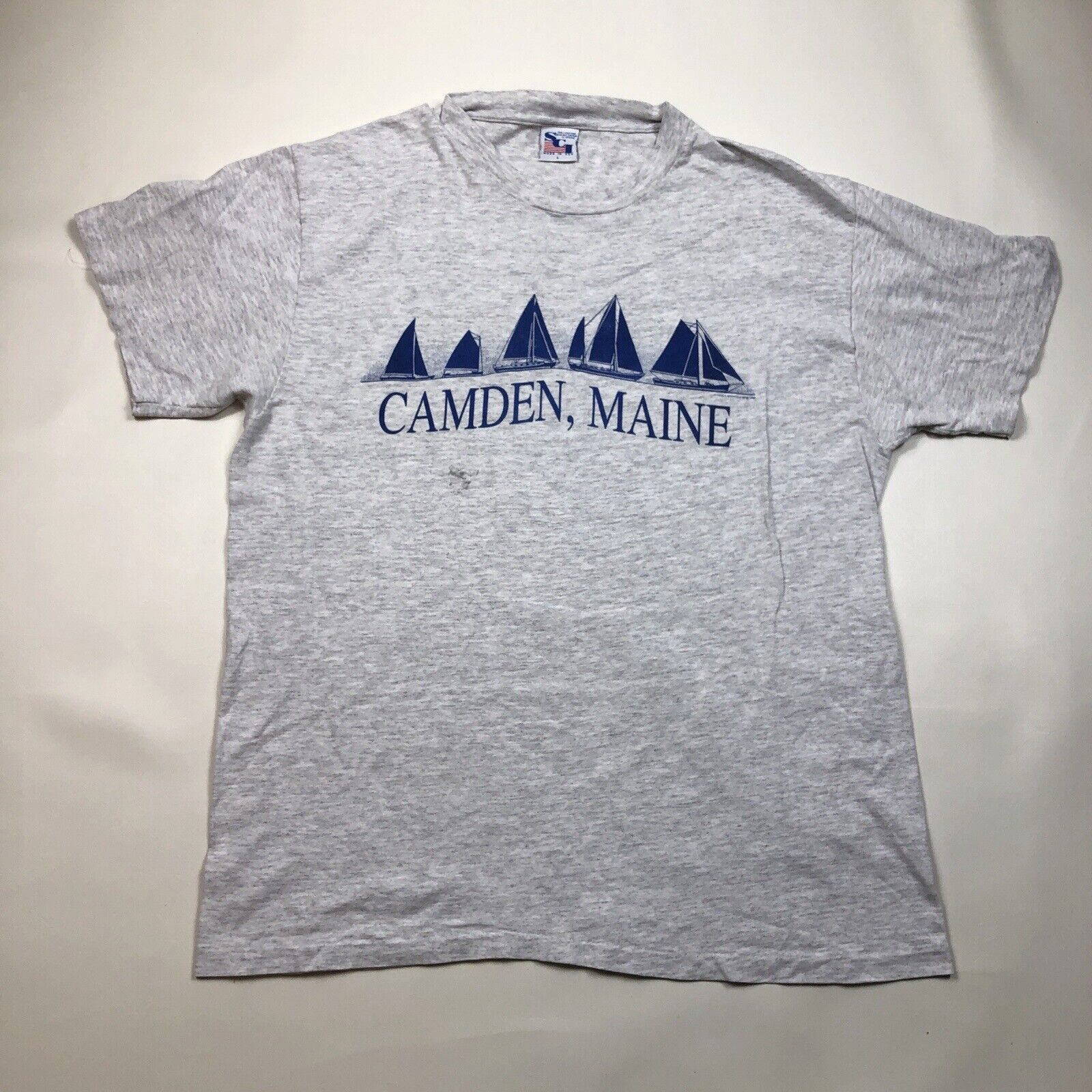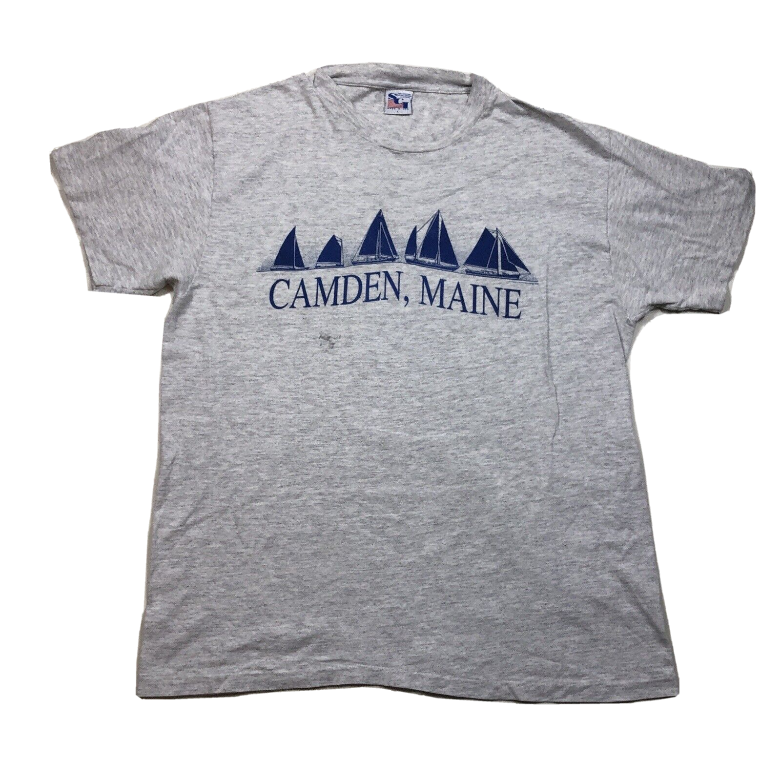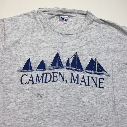 Vintage Camden Maine Sailboats Gray T-shirt Shirt has marks below the screenprint. See photos Adult Size Large USA Made Measurements Pit to pit 21 inches Neck to hem 27 inches