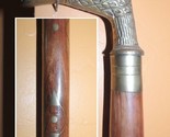 - Vintage Cane / Walking Stick 37" brass eagle handle inlaid Walnut? wood wooden