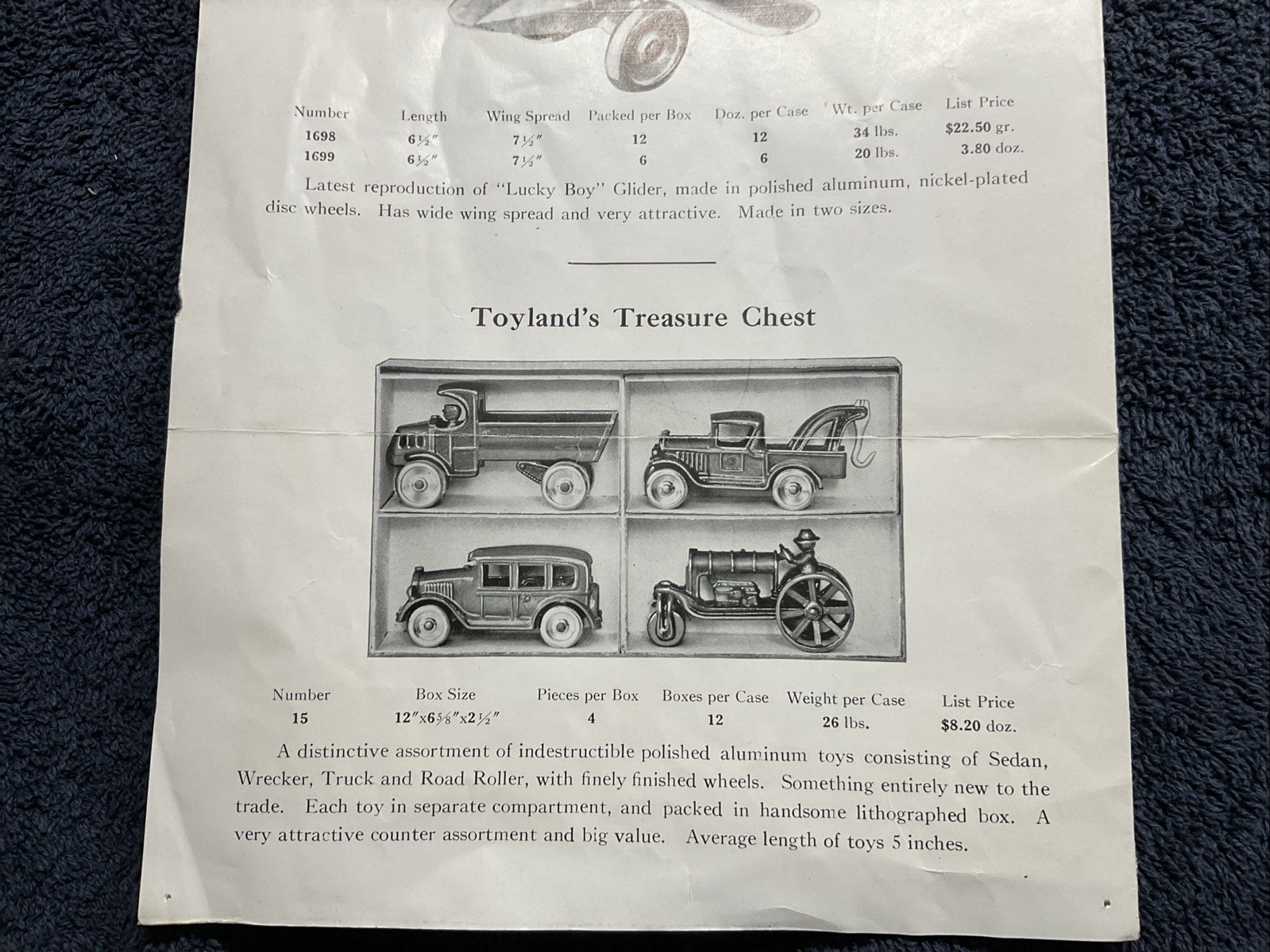 - Vintage Car Toy Catalog Dent Hardware Iron Toys ALUMINUM TOYS 1920s ORIGINAL