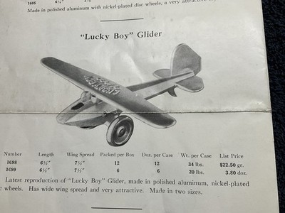 VG original and complete. Multiple page foldout. FREE Shipping ALUMINUM TOY SUPPLIMENT
