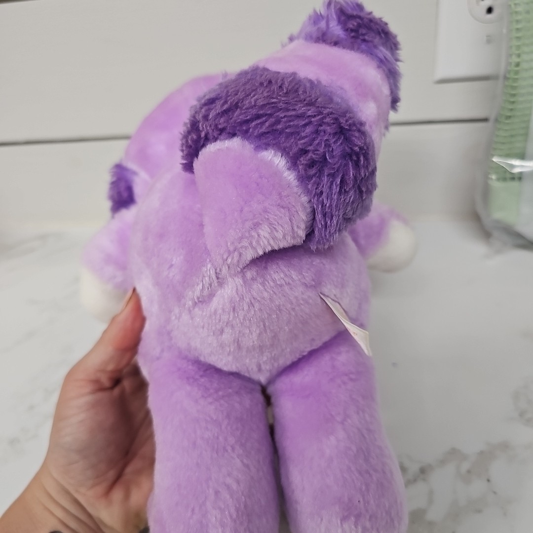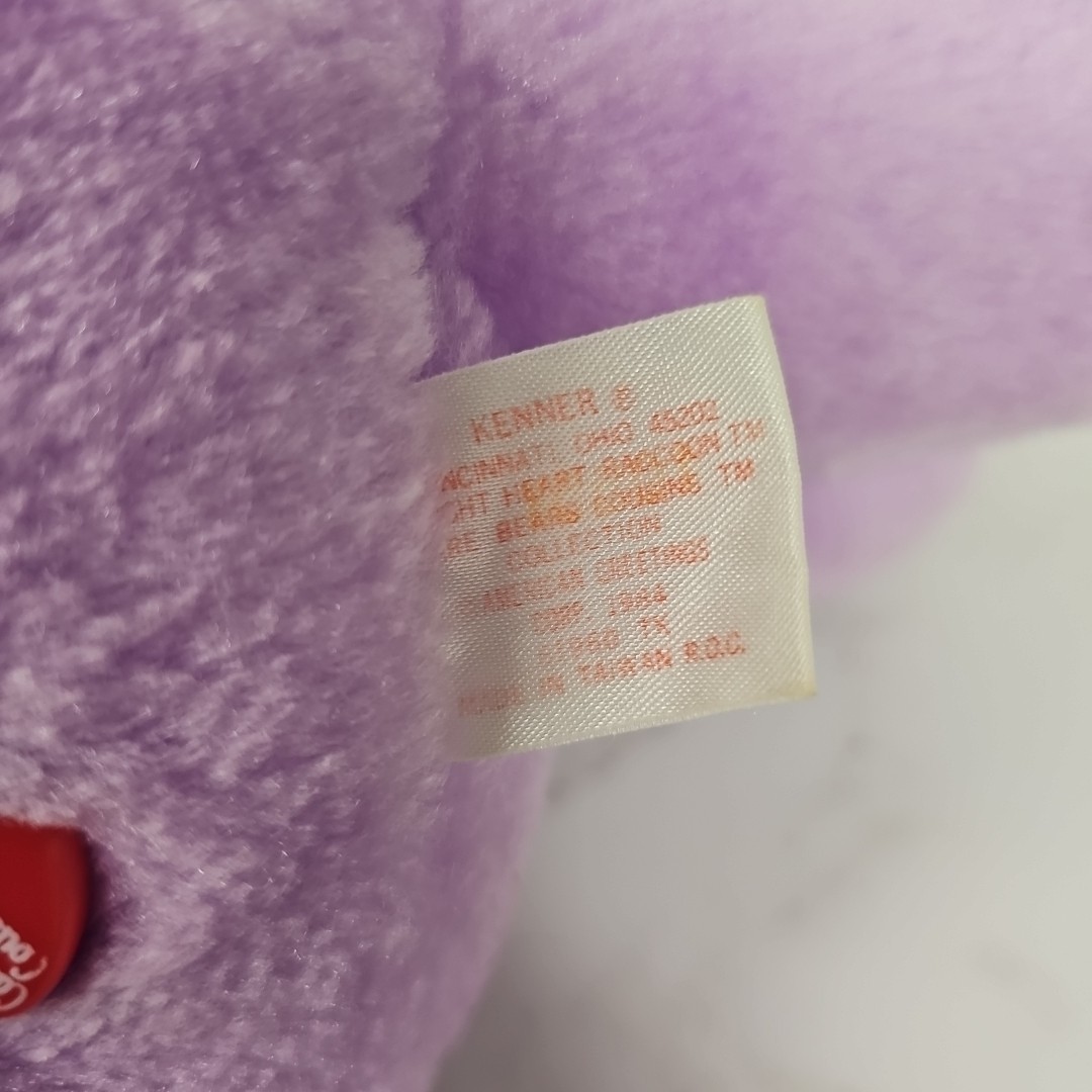 The Vintage Care Bear Cousin 13? 1984 Bright Heart Raccoon Plush in Purple is a collectible plush bear from the Care Bears franchise. This adorable stuffed animal, featuring the character Bright Heart Raccoon, is a perfect addition to any Care Bears fan's collection. Made in 1984 in Taiwan, this vintage plush bear is a rare find and a unique piece for any teddy bear enthusiast.