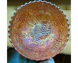 - Vintage Carnival Glass Scalloped Bowl Grapevine Motif Marigold LARGE Depression