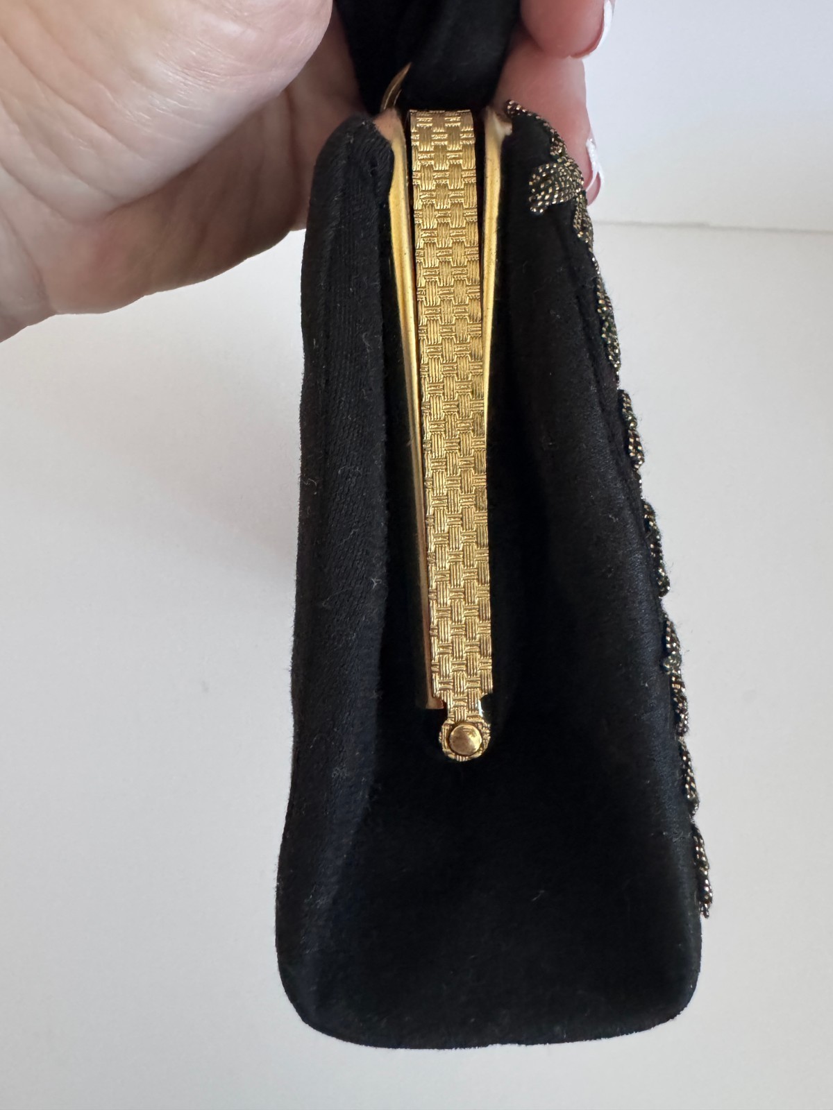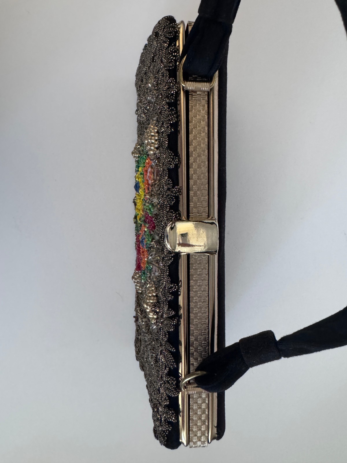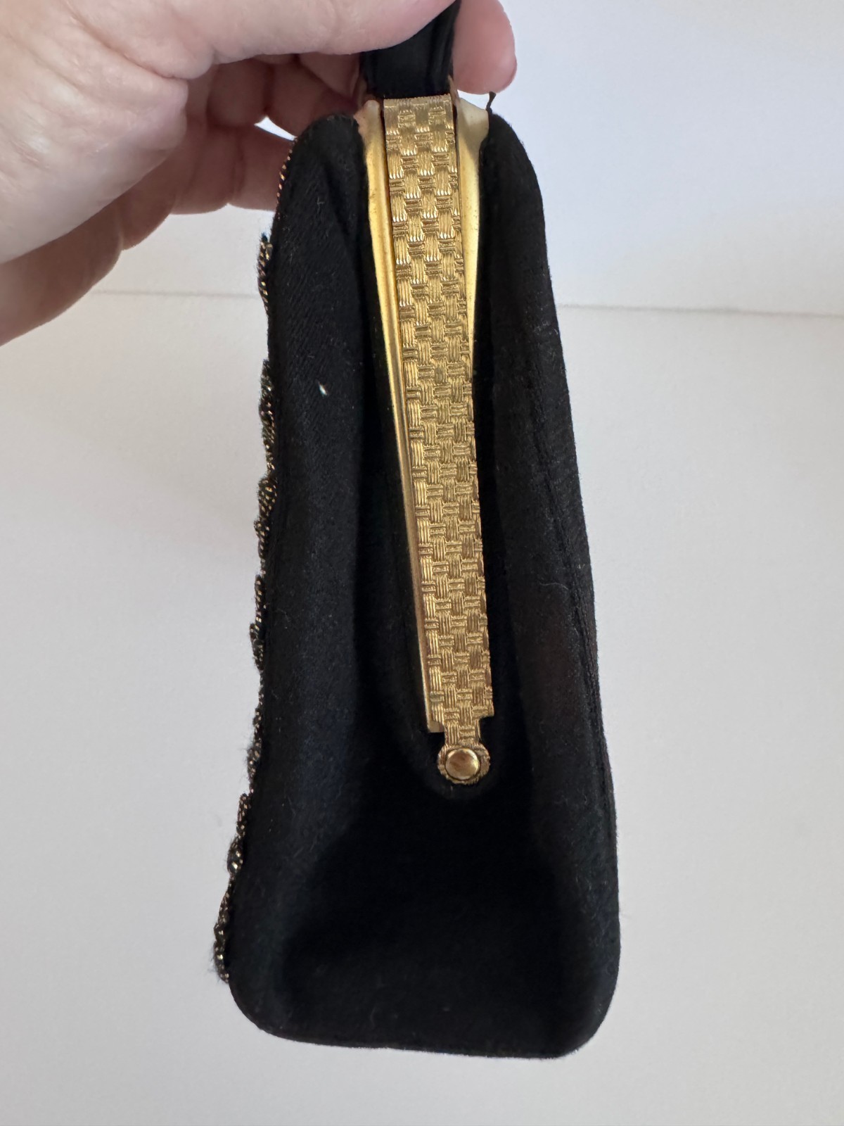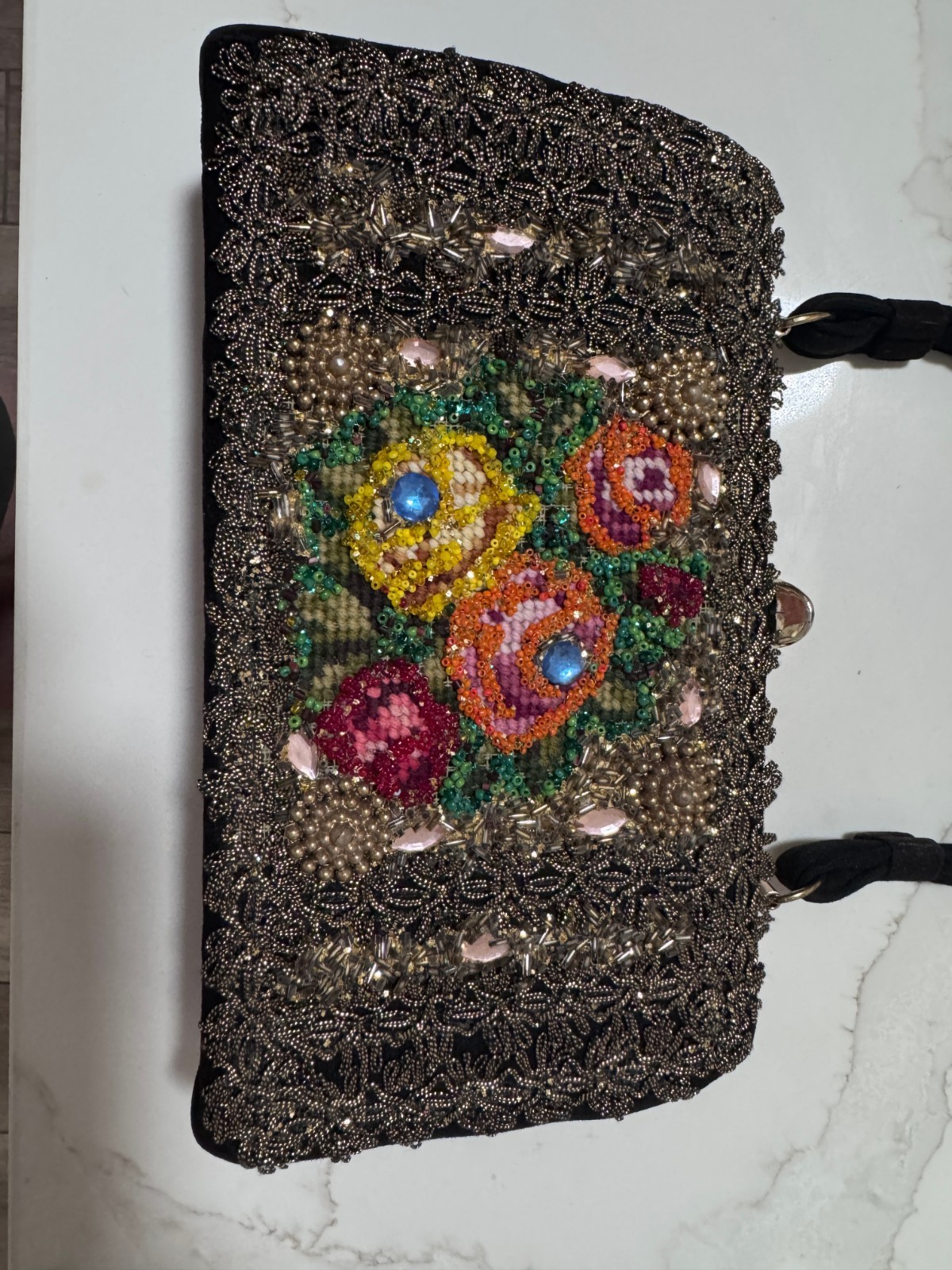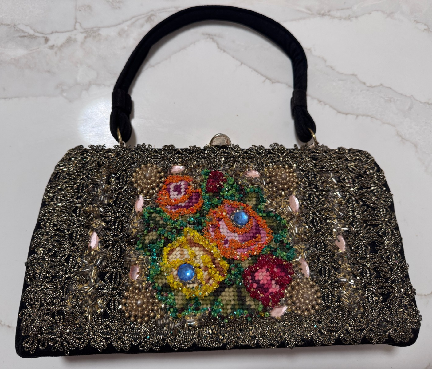 Vintage Caron of Houston Texas Hand Decorated Beaded Wool Purse Handbag
