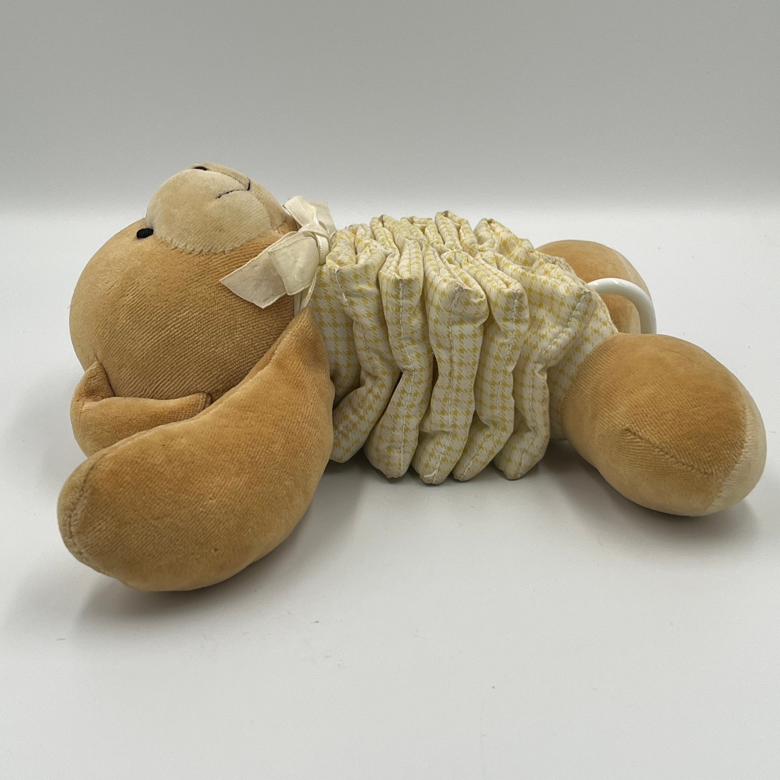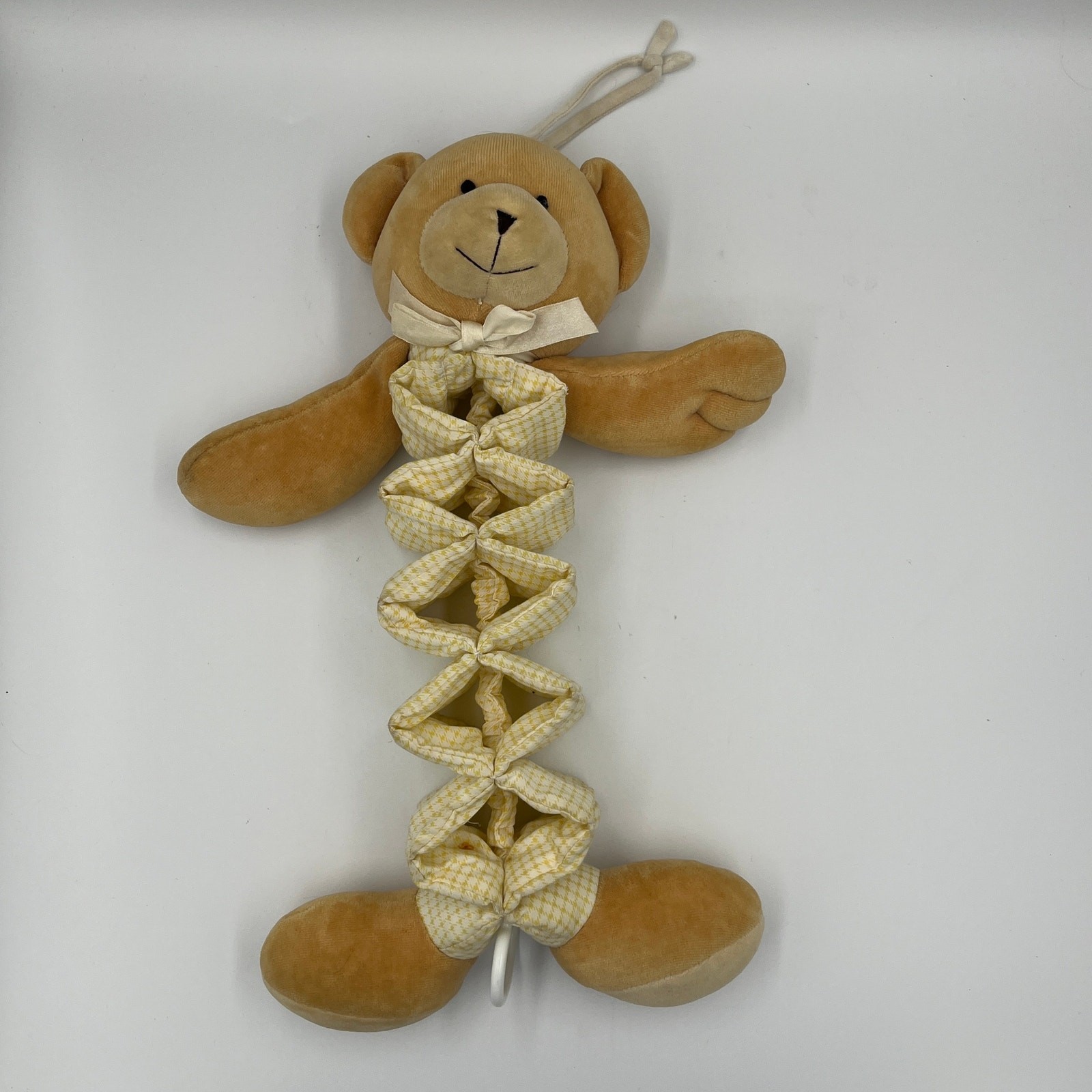 Vintage Carters Musical Bear crib pull toy by Prestige Toy Co. Yellow white gingham. Plays "Rock a bye baby". Tested and works as it should. Great, clean condition.