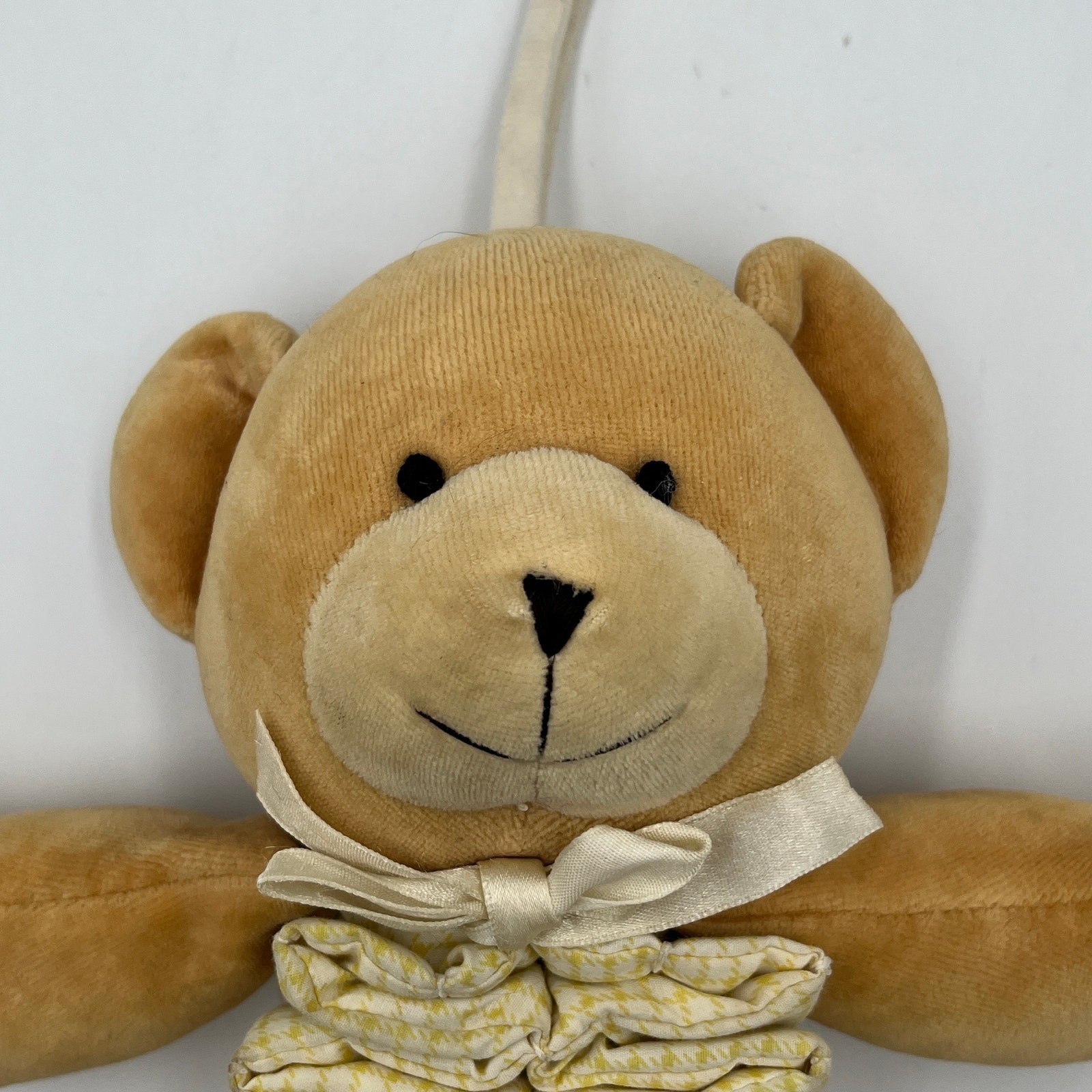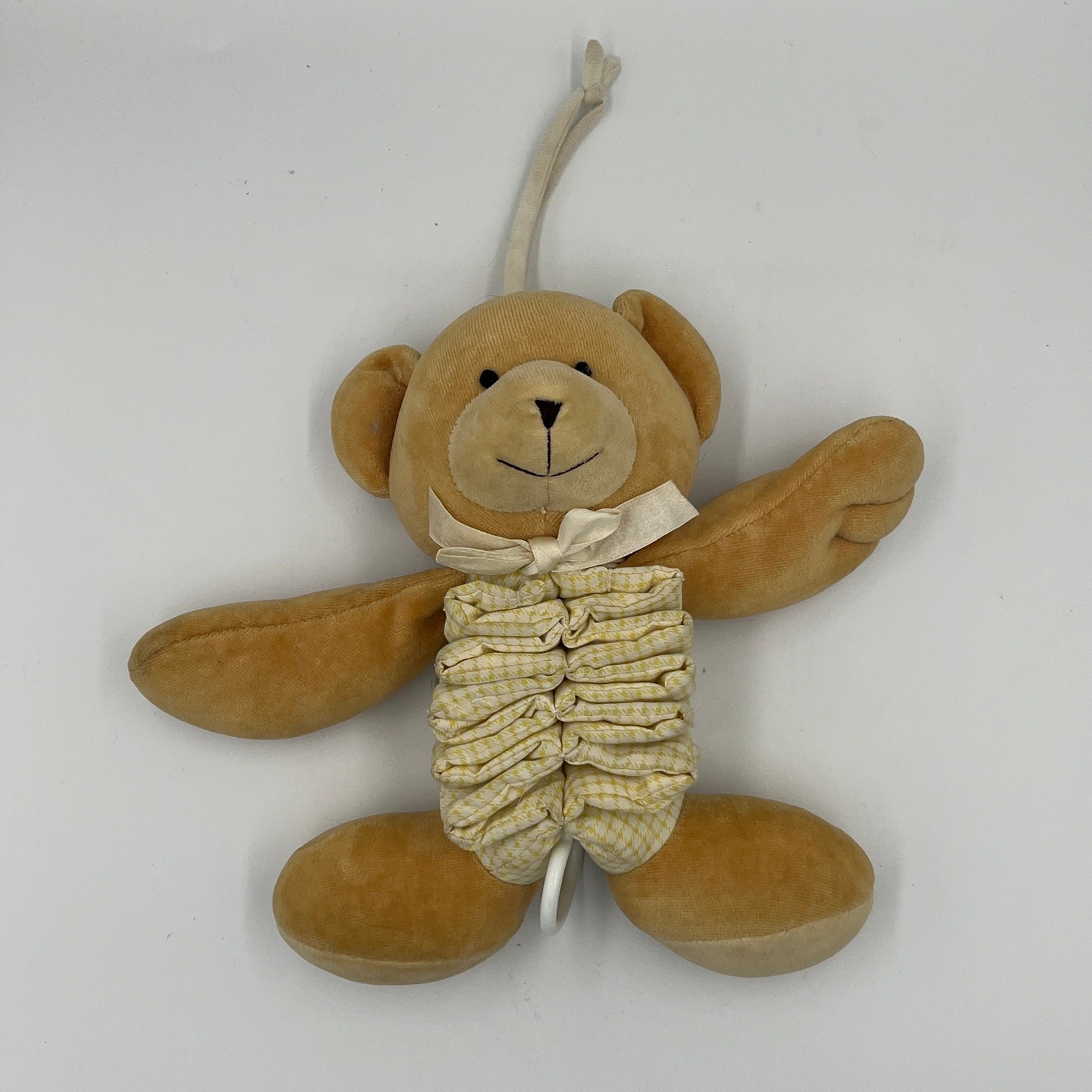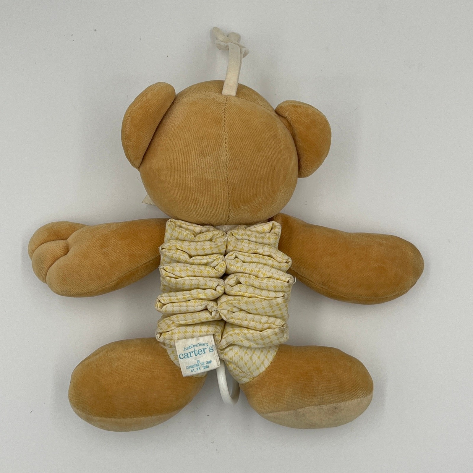 - Vintage Carters Musical Bear Crib Pull Toy Yellow Gingham Lullaby 9”