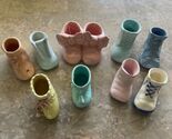 The Vintage Ceramic Baby Shoes are a charming and unique planter in the shape of baby shoes, perfect for adding a touch of whimsy to any space. Made of ceramic, these shoes are not only functional for holding plants or potpourri, but also make a lovely decorative collectible for those who appreciate vintage items. The theme of these shoes specifically focusing on a baby adds a special sentimental touch, making them a great addition to a nursery or playroom.