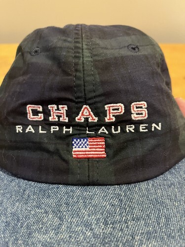 - Vintage Chaps RL Ralph Lauren Denim Bill Navy Plaid Strap Back Hat Cap