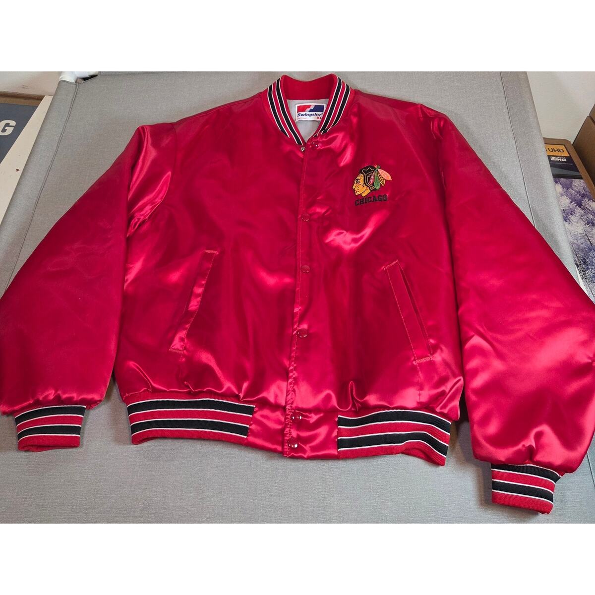 Vintage Chicago Blackhawks Swingster Red Satin Mens Bomber Jacket XL USA