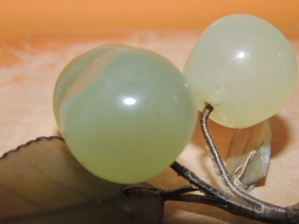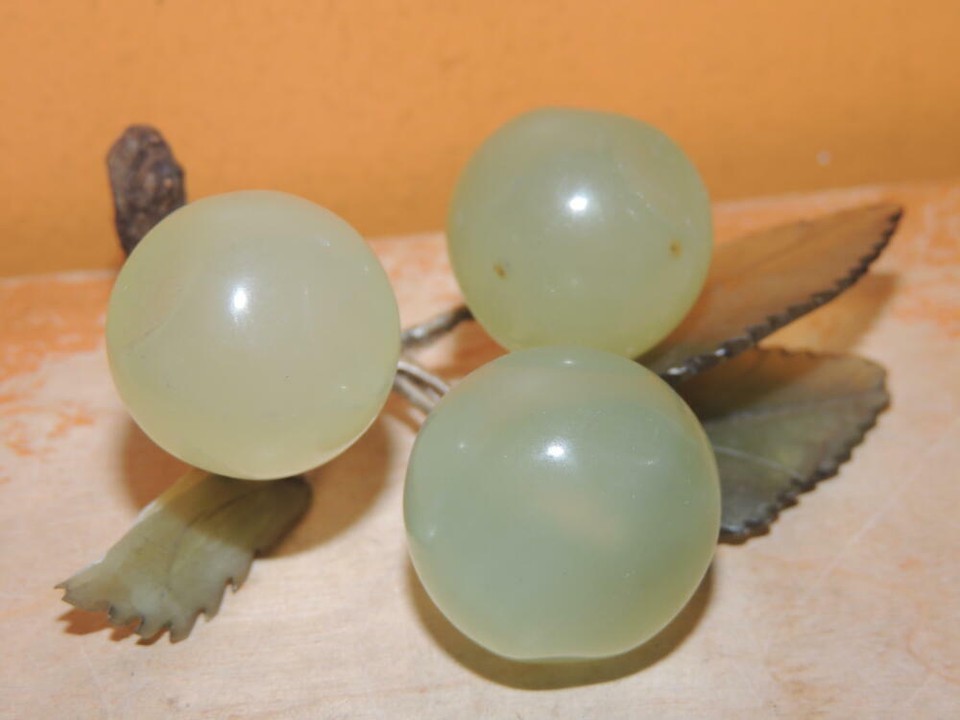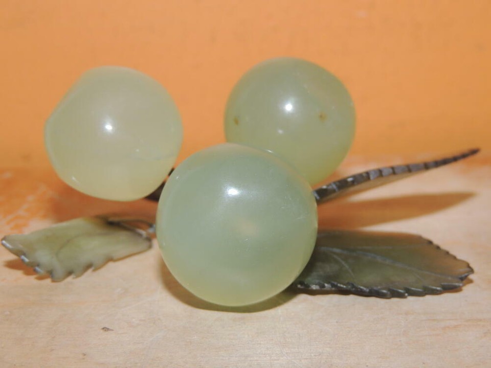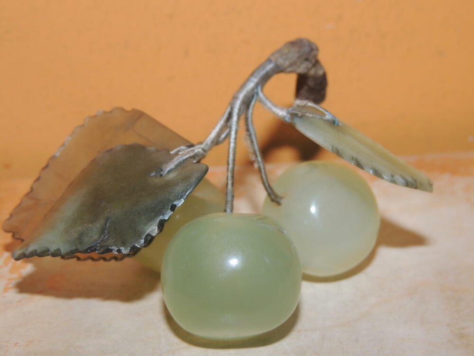 - Vintage Chinese Agate Jade Cherries Branch Leaves Celadon Green Jadeite Nephrite