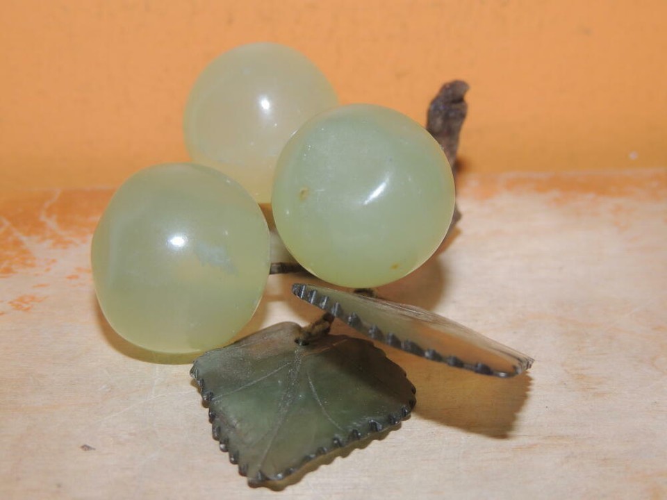 AGATE CHERRIES ON THE BRANCH, THE BRANCH IS DEFINITELY MAN MADE, BUT IT IS AN EXCELLENT REPLICA OF PETRIFIED WOOD. I AM NOT AN EXPERT BUT MY RESEARCH INDICATES THIS IS POSSIBLY GENUINE JADE. PLEASE LOOK AT THE PICTURES CAREFULLY.
