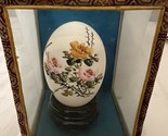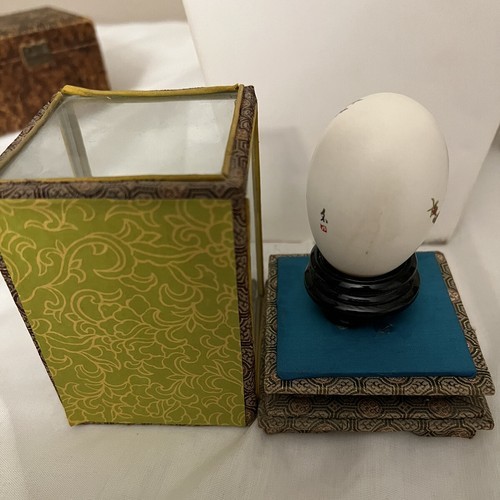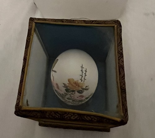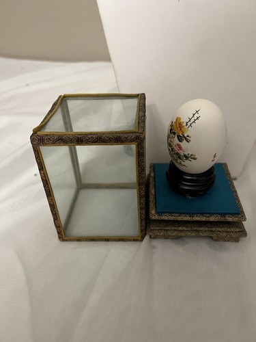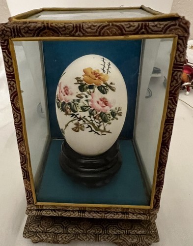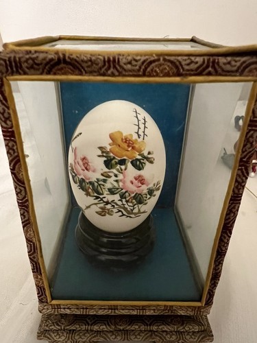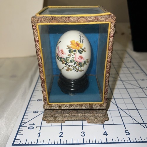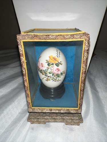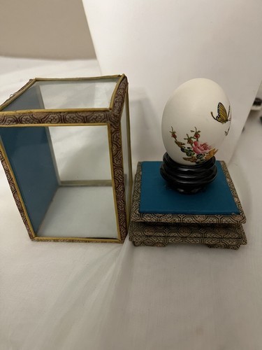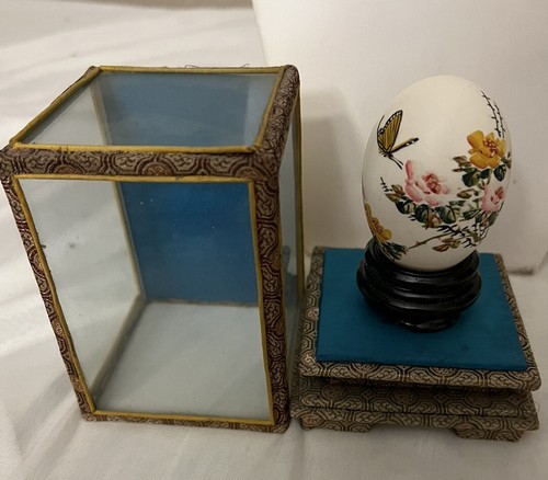 - Vintage Chinese Hand Painted Egg Butterfly & Flowers In Glass Display Box Stand