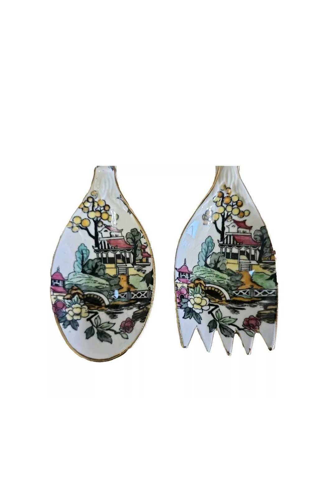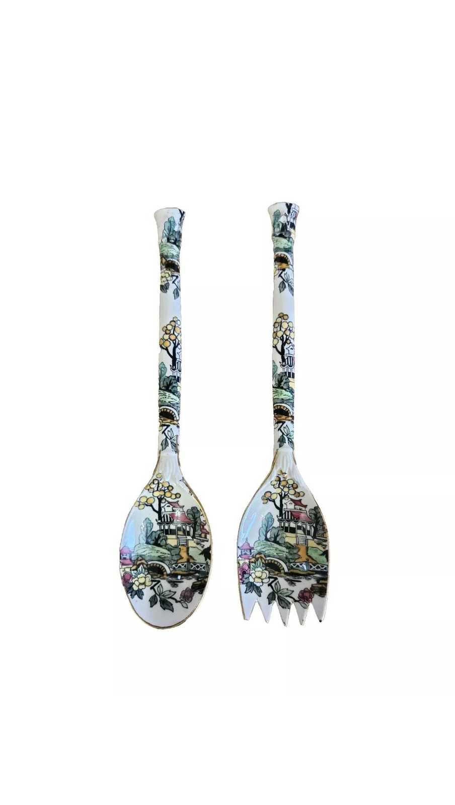 Genuine Vintage Item Made in China Circa 1950?s Chinese Painted Porcelain Serving Spoon Fork Rare! I couldn't find anything like it online. Each Measures Approx: 9" Long Condition: Very Good! No cracks or chips. Please see all photos as they are part of the description. Comes from a smoke and pet free home. If you are unhappy with your purchase, please contact me first before opening a return case or leaving negative feedback. I strive for a 5-star experience for all my customers.