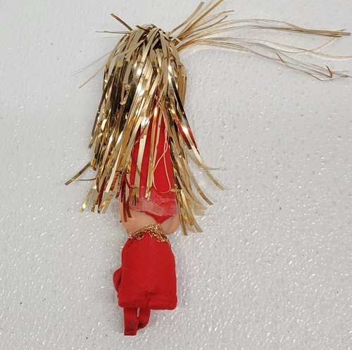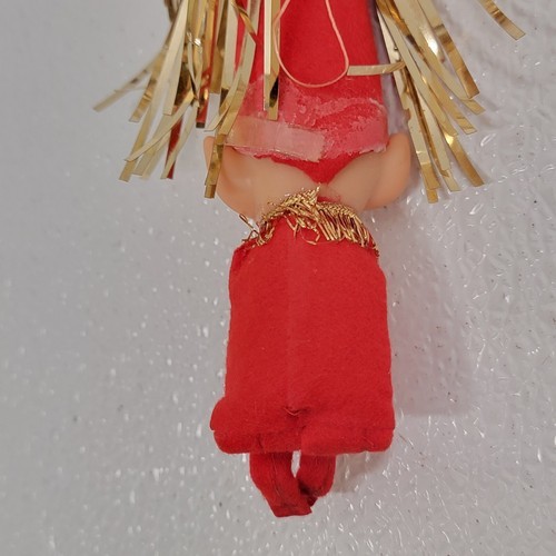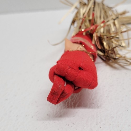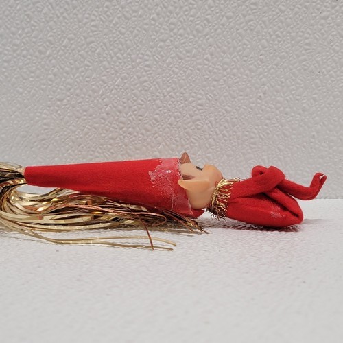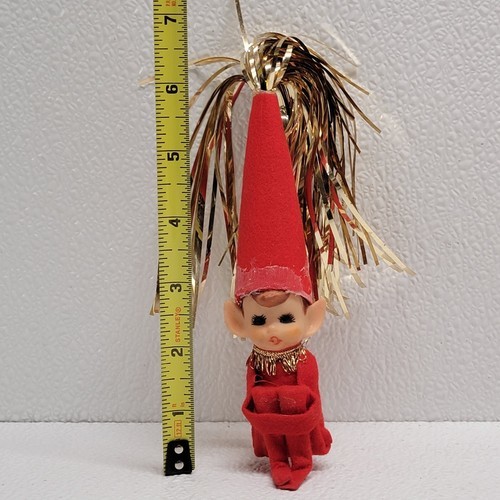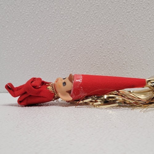 Vintage Christmas Elf Pixie Knee Hugger Figure Tinsel Cone Hat Red Gold. See images for condition. Images show actual item that will ship.