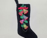 - Vintage Christmas Stocking Handmade Black Velvet Beads Sequins Bells