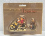 - Vintage Christmas Village Figurines - Couple On Motorcycle & Boy With Bags