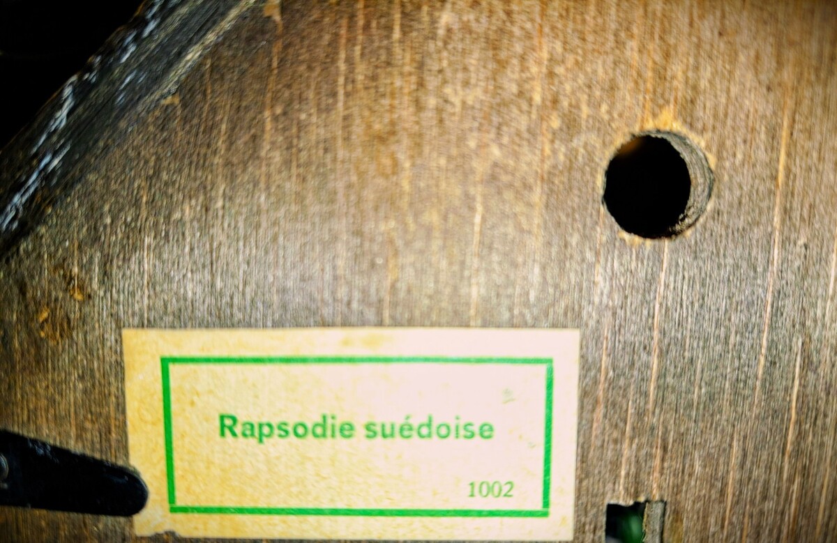 were sonically cleaned then oiled. Music box plays ?Rapsodie Suedoise? melody