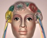Vintage Clay Mask Woman with Yellow Pink and Purple Flower Head Piece